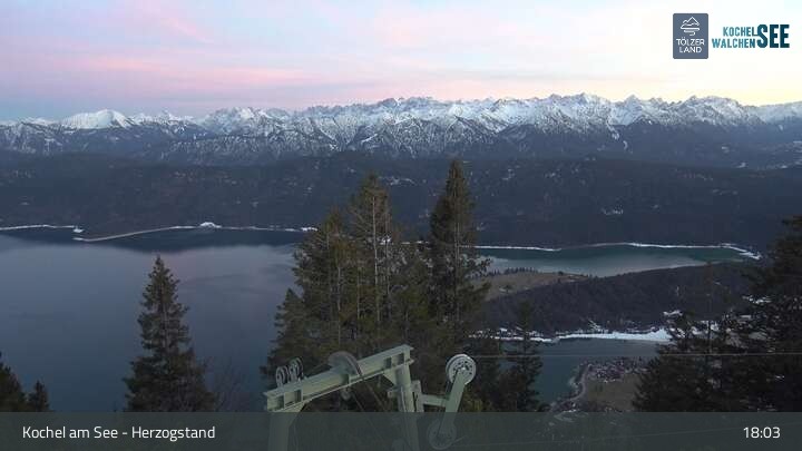 Archiviertes Webcam Bild: Blick vom Herzogstand auf den Kochelsee am 26 Feb 2026 um 07:48 Uhr 06:00