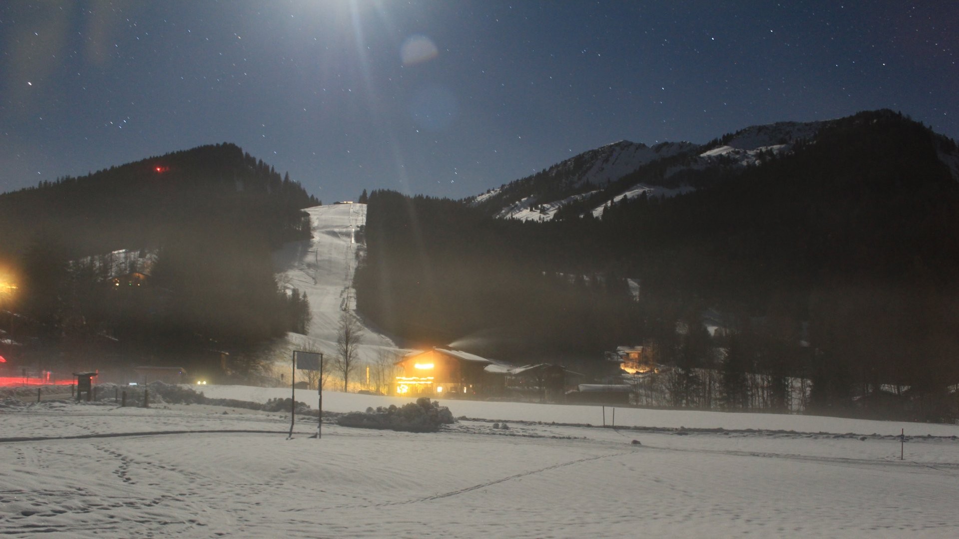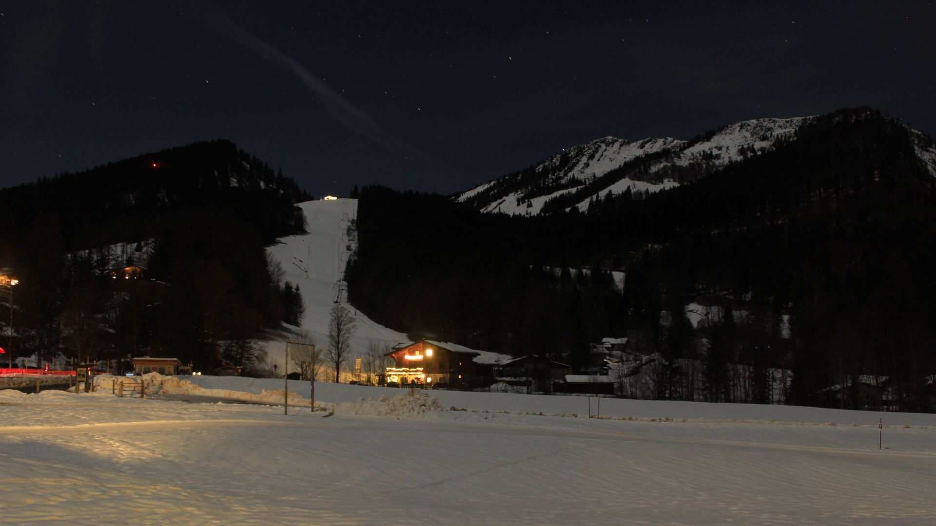 Die Webcam zeigt den Blick von der Bergstation des Wildalmlifts auf das gemütliche Skigebiet in Unken. Es liegt im Salzburger Land an der Grenze zu Bayern.
