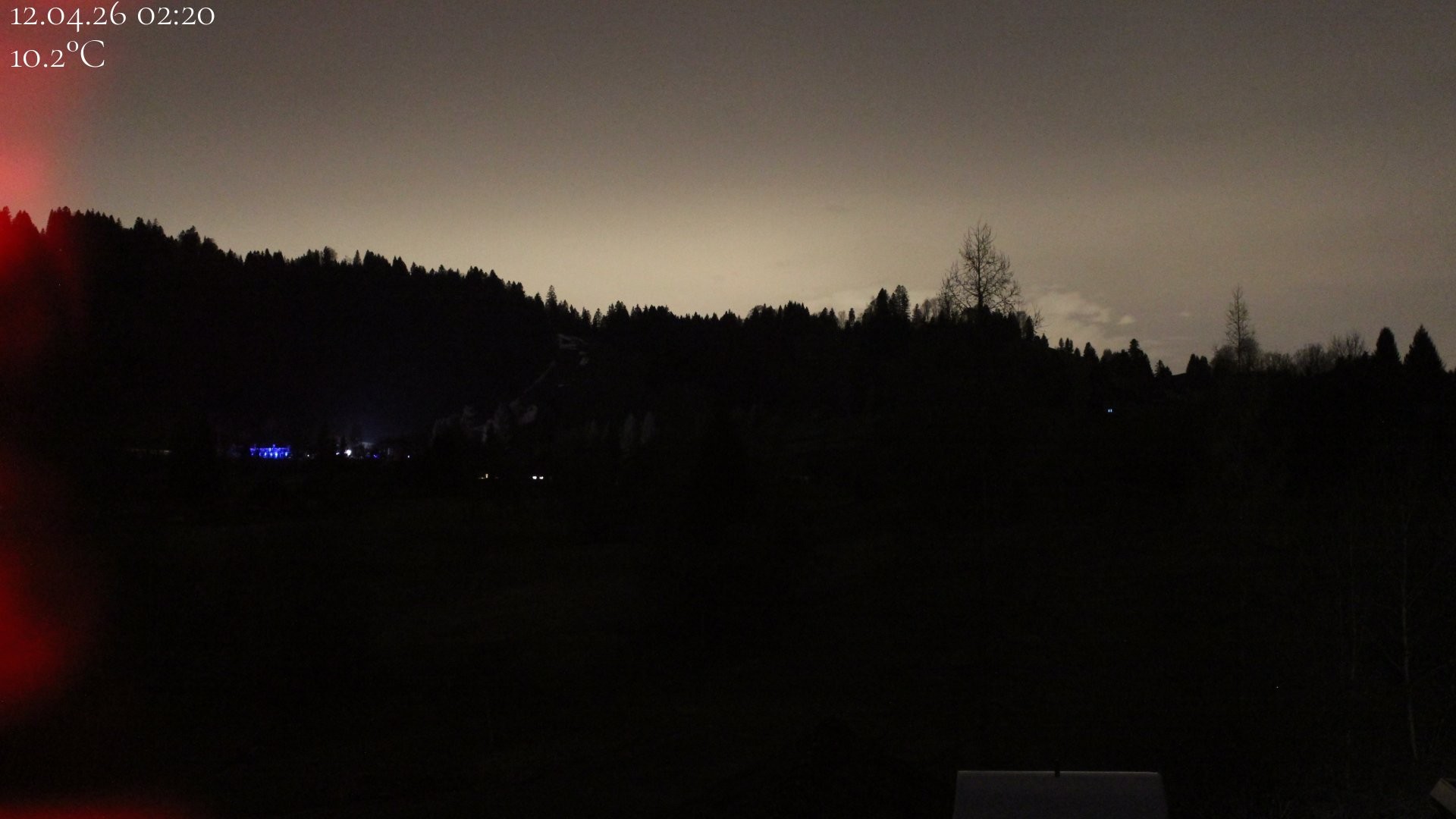 Archiviertes Webcam Bild: Oberstaufen: Biohotel Schratt - Blick zur Imbergbahn am 12.04.2026 um 02:43 Uhr 02:00