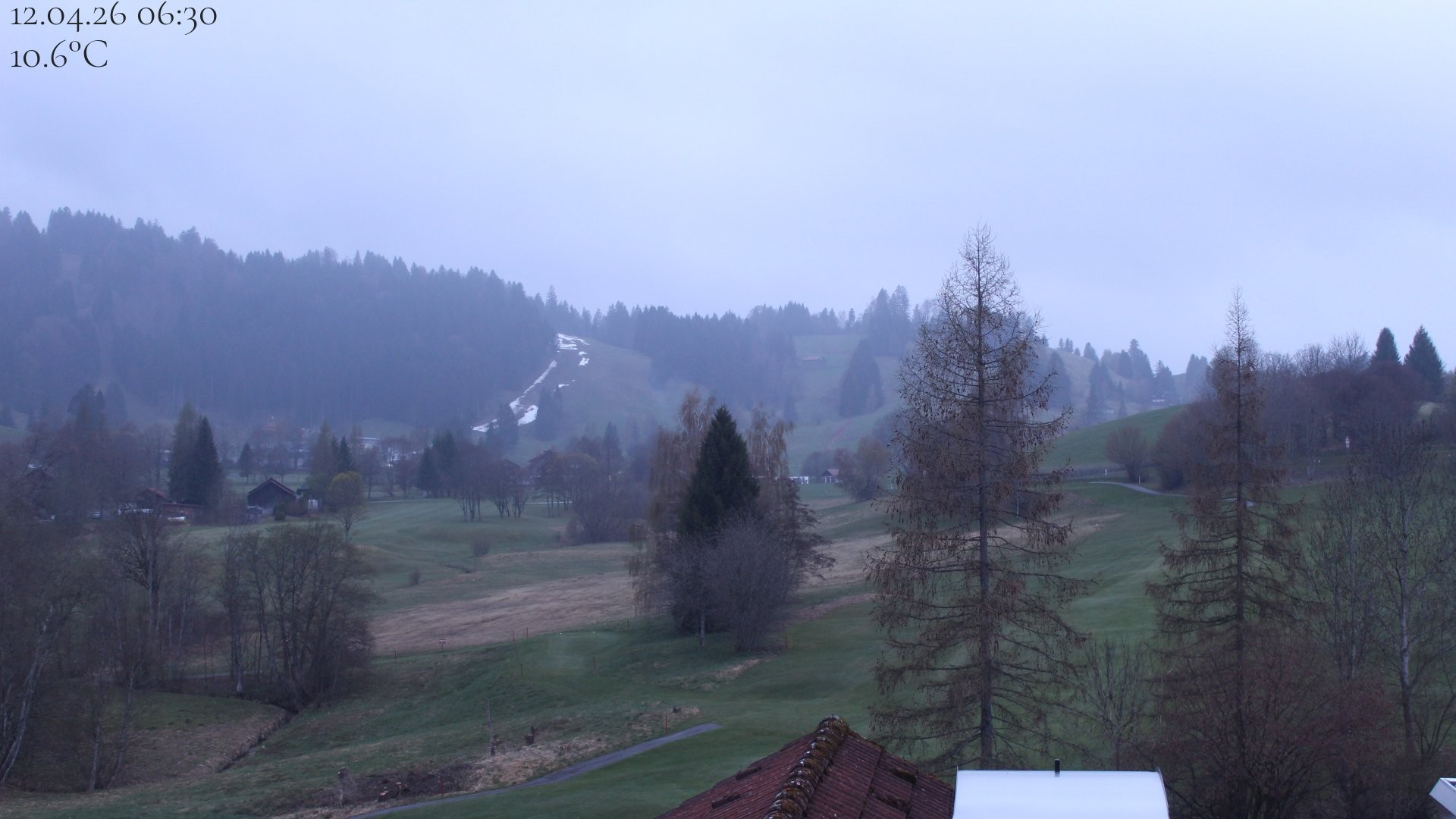 Archiviertes Webcam Bild: Oberstaufen: Biohotel Schratt - Blick zur Imbergbahn am 12.04.2026 um 06:43 Uhr 06:00