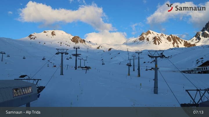 Archiviertes Webcam Bild: Samnaun - Alp Trida am 10.04.2026 um 07:35 Uhr 07:00