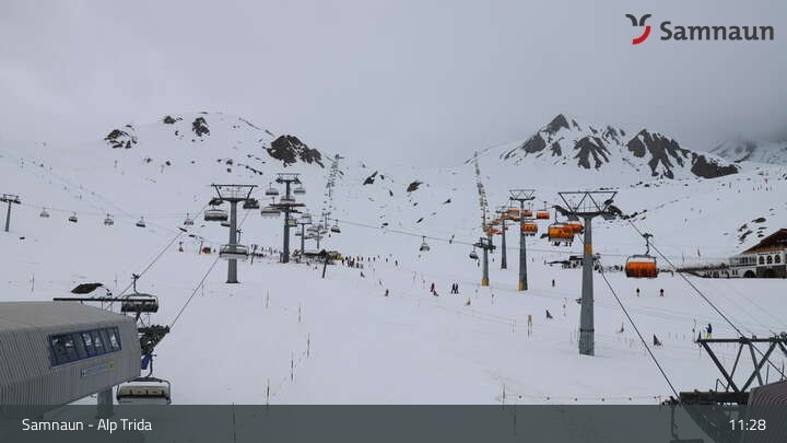Archiviertes Webcam Bild: Samnaun - Alp Trida am 10.04.2026 um 11:35 Uhr 11:00