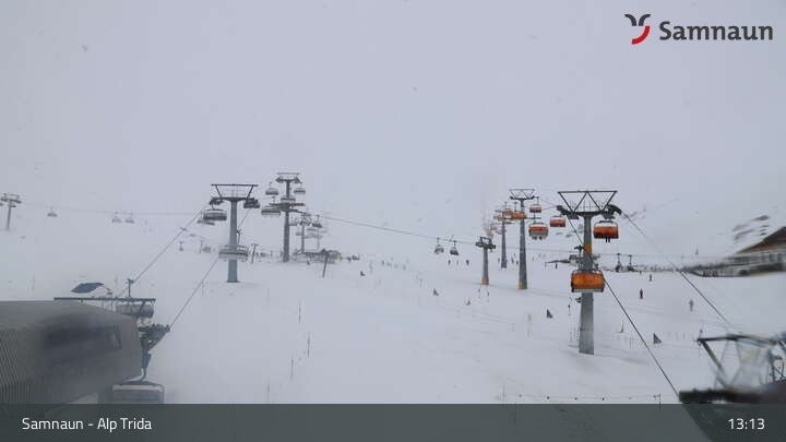 Archiviertes Webcam Bild: Samnaun - Alp Trida am 10.04.2026 um 13:35 Uhr 13:00
