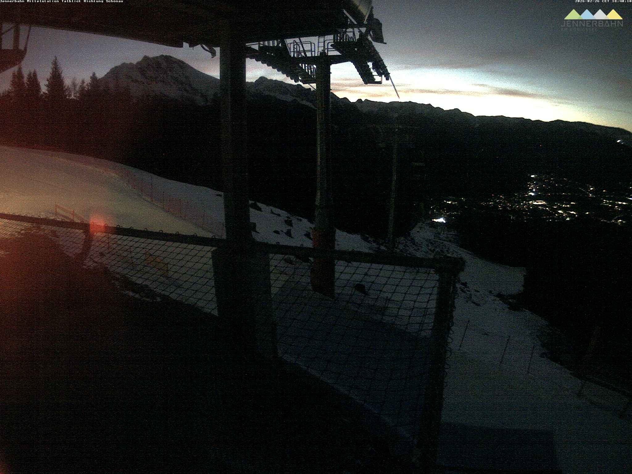 Archiviertes Webcam Bild: Jennerbahn Mittelstation am 26 Feb 2026 um 18:23 Uhr Aktuell