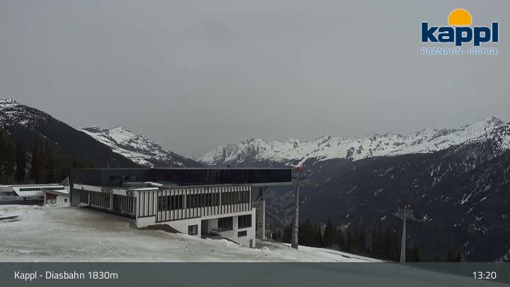 Archiviertes Webcam Bild: Kappl: Bergstation Diasbahn am 12.04.2026 um 13:24 Uhr 13:00