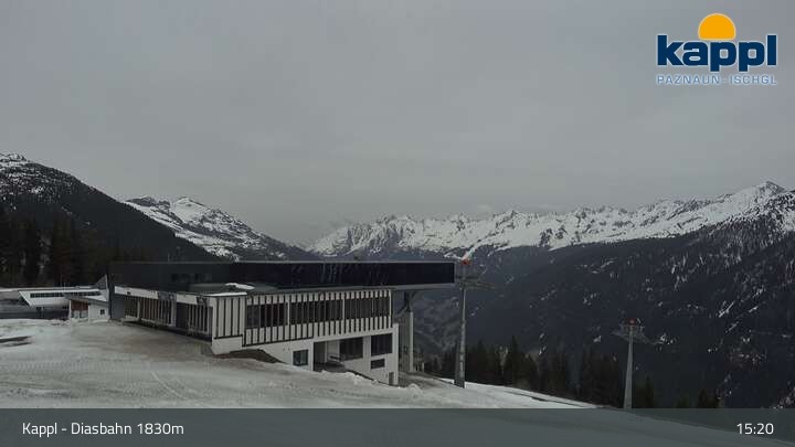 Archiviertes Webcam Bild: Kappl: Bergstation Diasbahn am 12.04.2026 um 15:24 Uhr 15:00