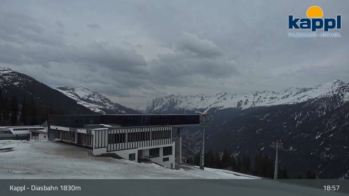 Archiviertes Webcam Bild: Kappl: Bergstation Diasbahn am 12.04.2026 um 19:24 Uhr 19:00