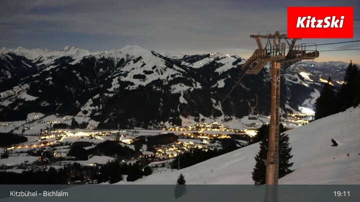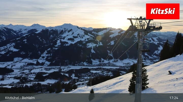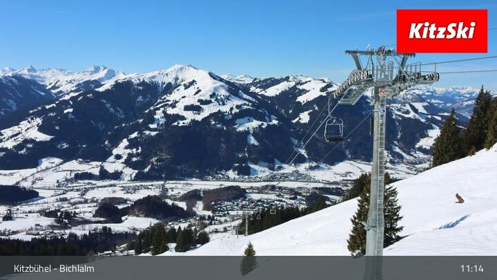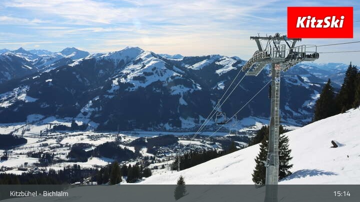 Die Webcam an der Bergstation des Bichlalm Sessellifts in Kitzbühel eröffnet einen wunderbaren Blick über Kitzbühel und die Tiroler Alpenwelt. Außerdem zu sehen ist der Berggasthof BichlAlm.