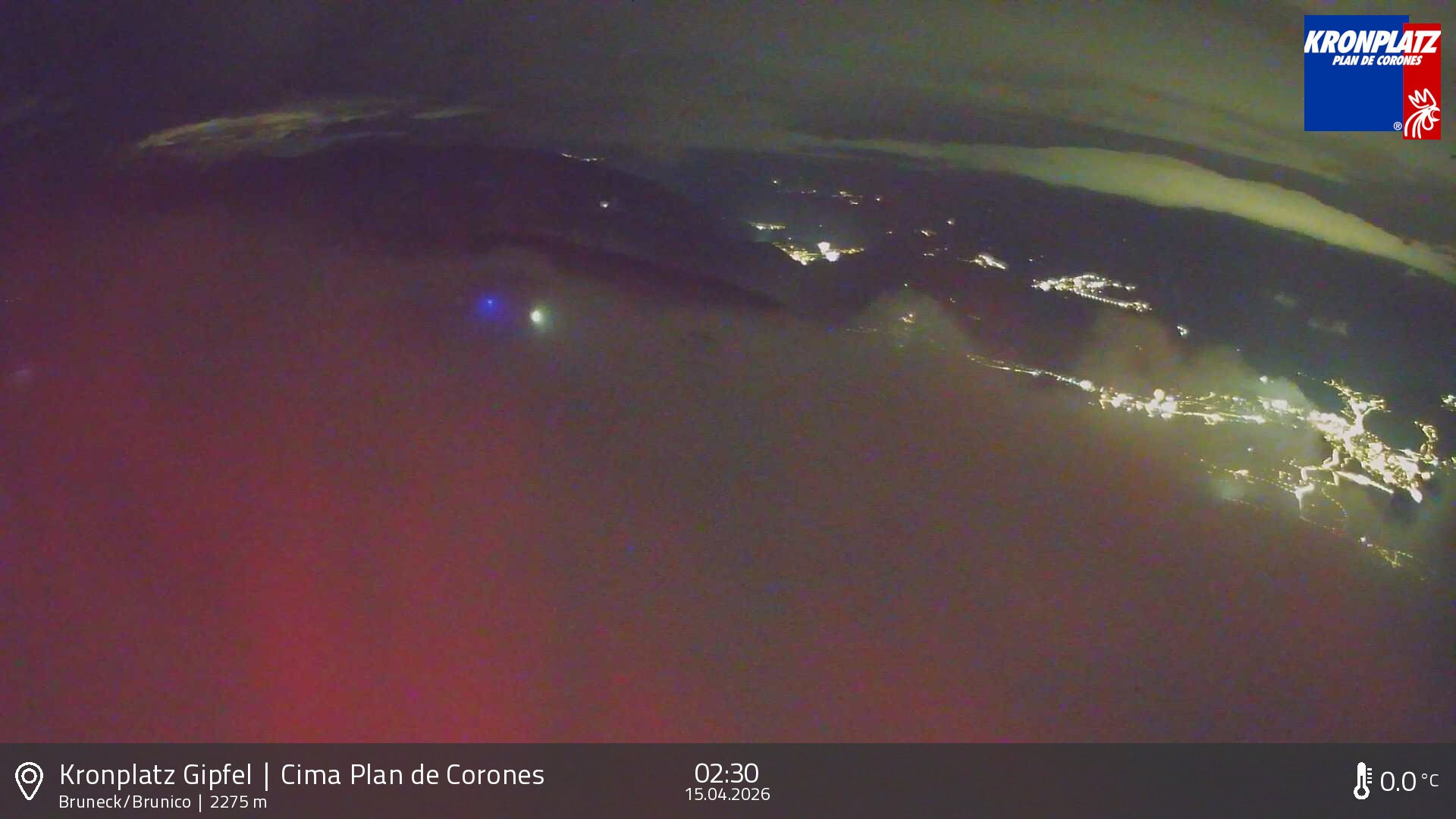 Archiviertes Webcam Bild: Kronplatz: Sicht auf Bruneck am 15.04.2026 um 00:12 Uhr 00:00