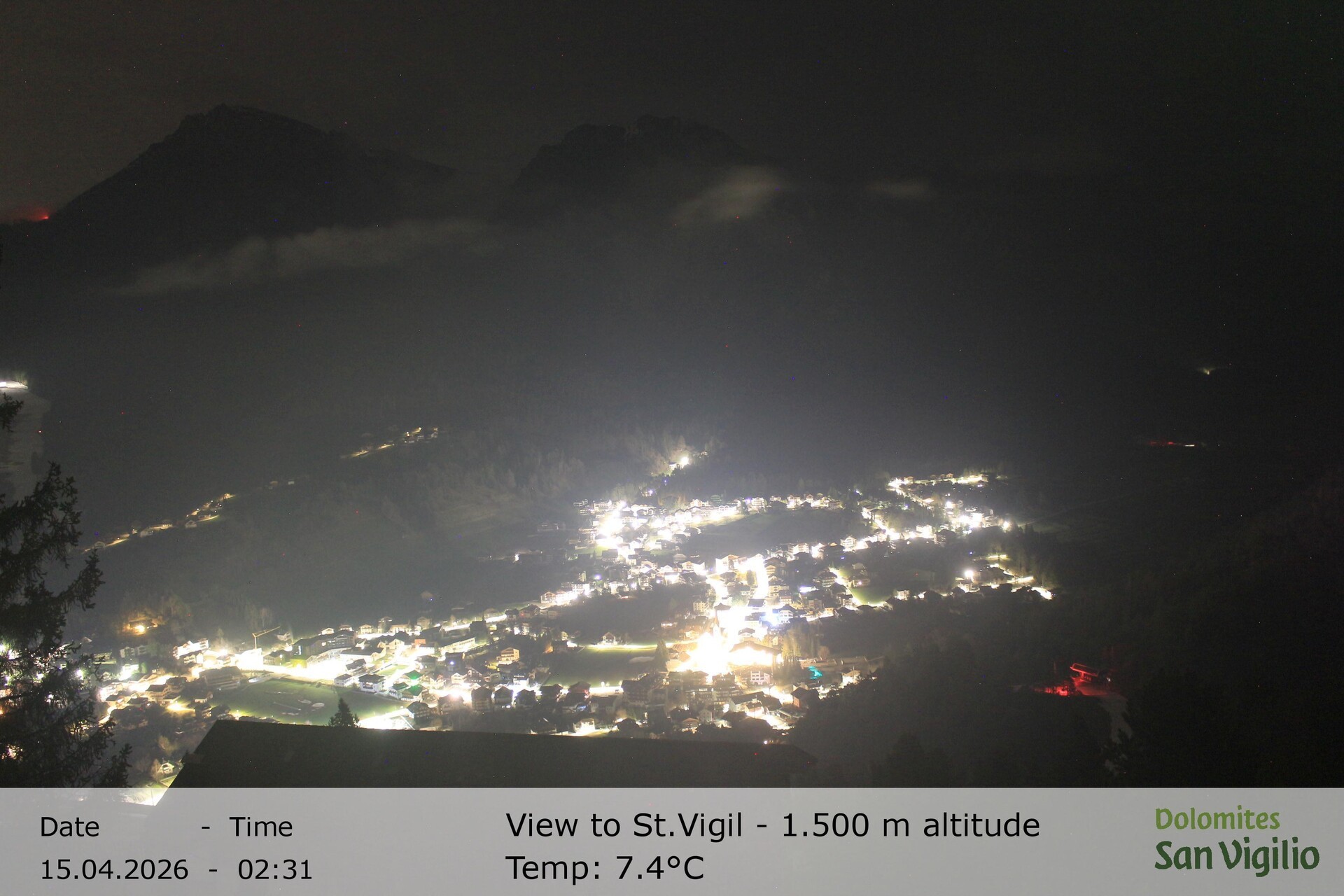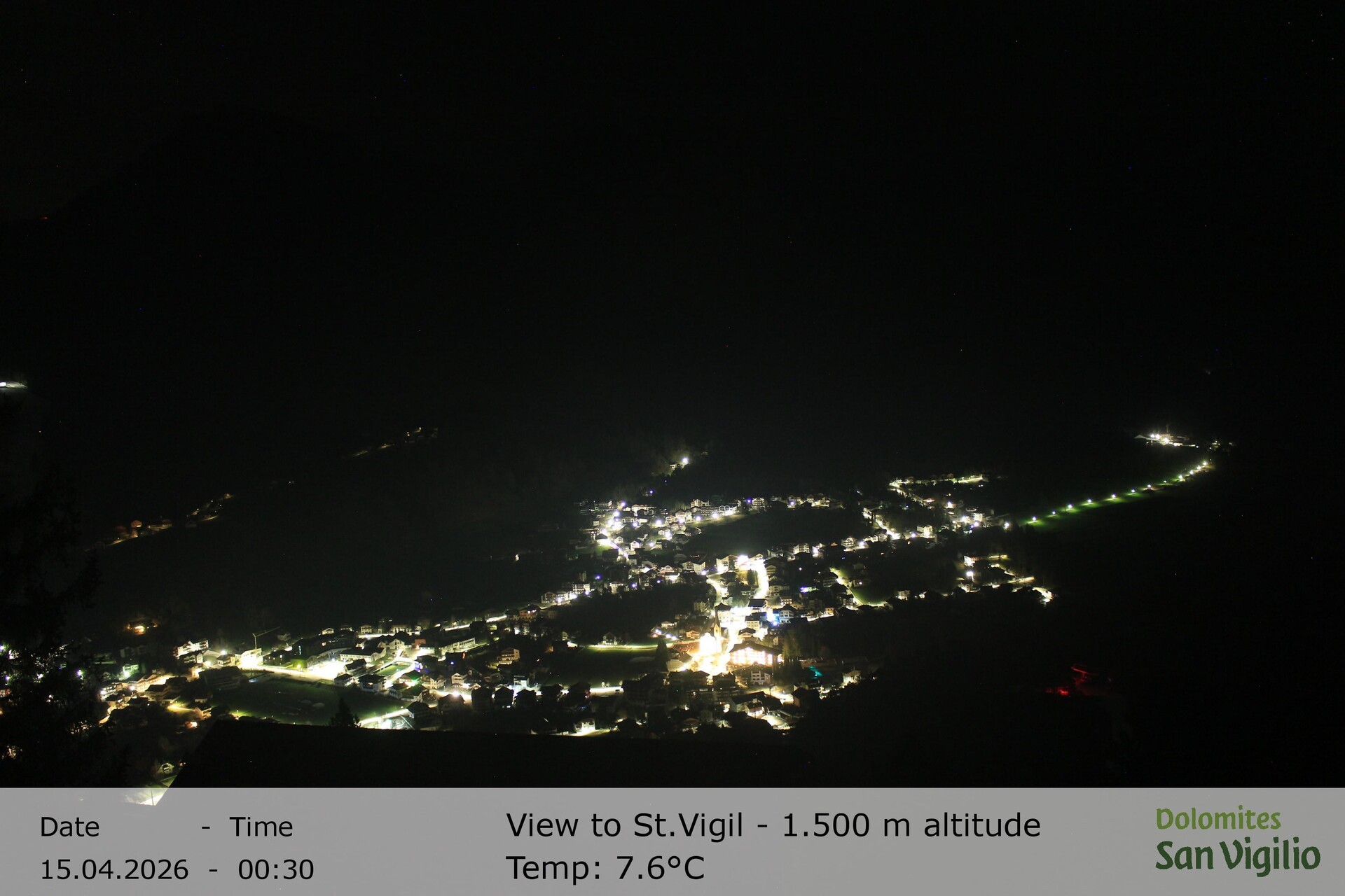 Archiviertes Webcam Bild: St. Vigil in Enneberg im Südtiroler Pustertal am 15.04.2026 um 02:15 Uhr 02:00
