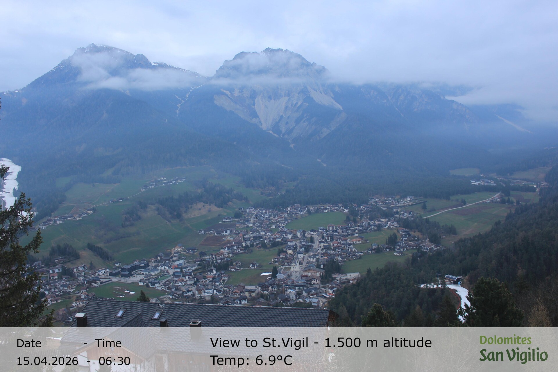 Archiviertes Webcam Bild: St. Vigil in Enneberg im Südtiroler Pustertal am 15.04.2026 um 06:15 Uhr Aktuell