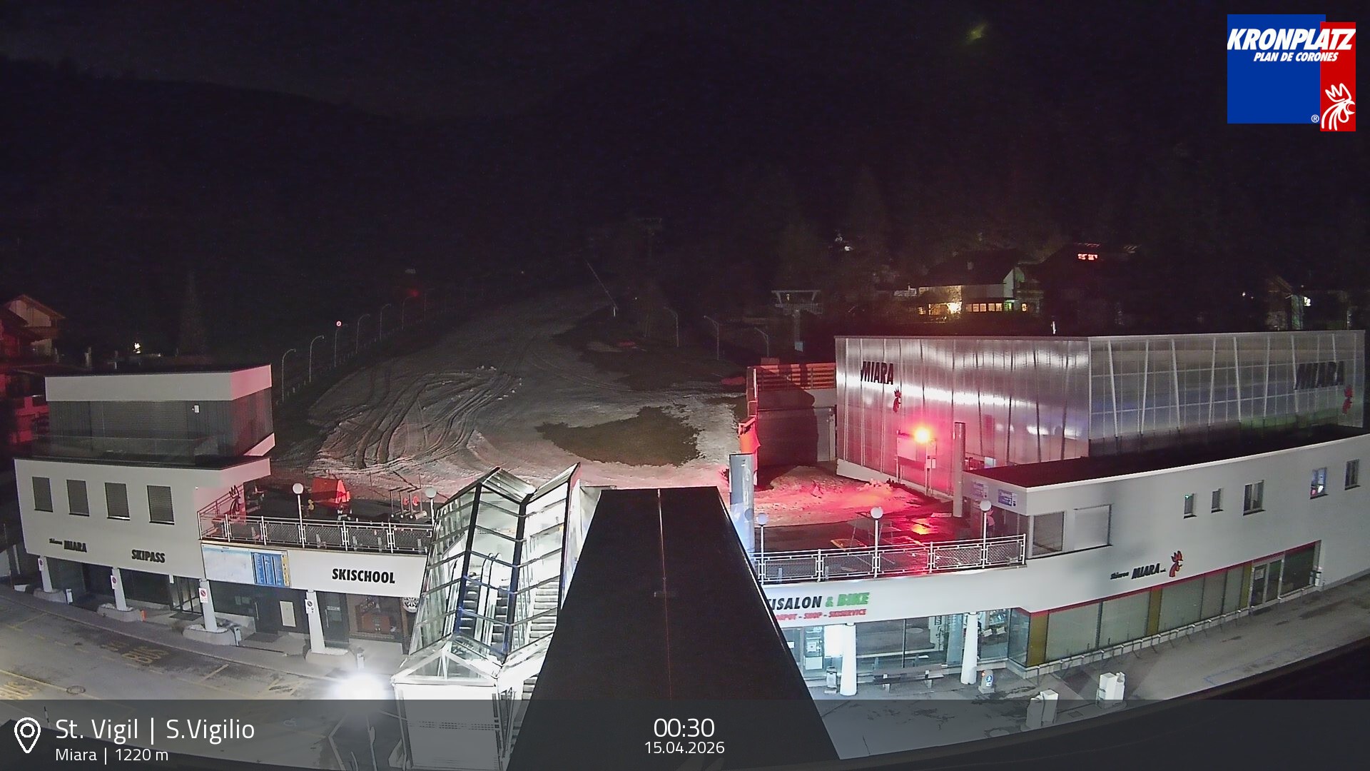 Archiviertes Webcam Bild: Kronplatz: Talstation Miara am 15.04.2026 um 02:12 Uhr 02:00