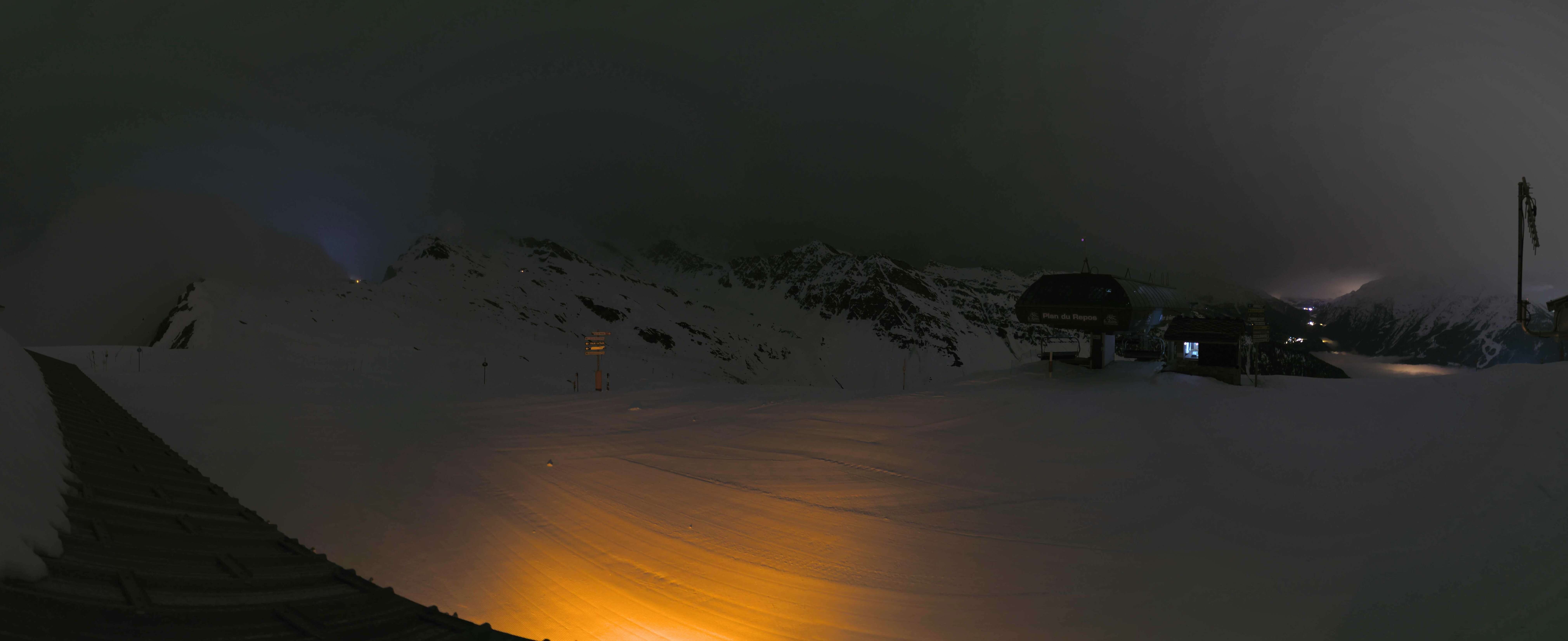 Aussicht vom Roc Noir auf die Sesselbahn Roches Noir im Skigebiet La Rosiere.
