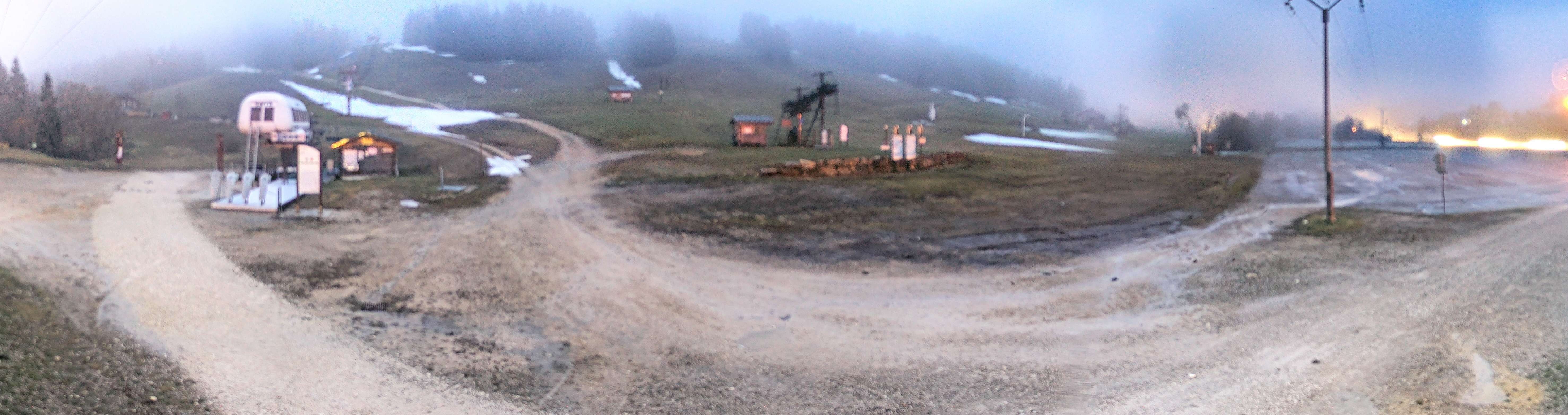 Zu sehen ist die Talstation der Lifte am Massif de la Serra im französischen Jura, Franche-Comté.