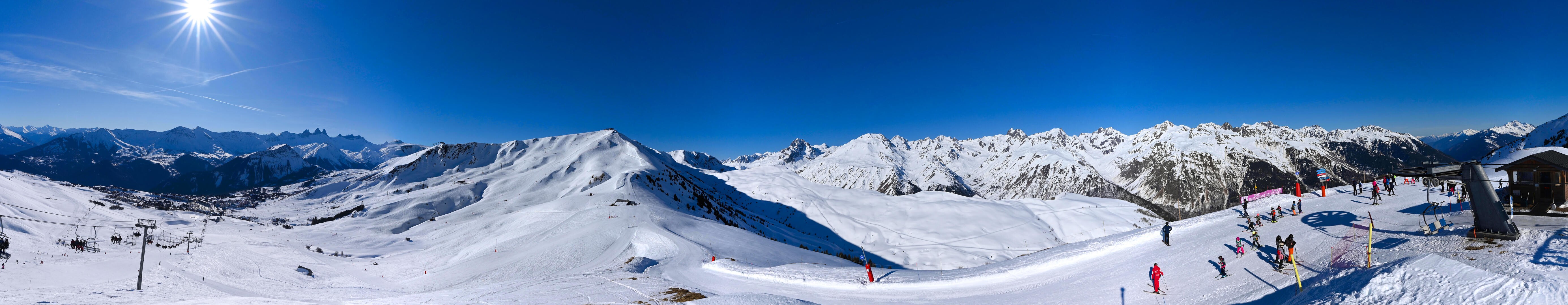 Diese Webcam befindet sich an der Bergstation des Sessellifts Chaput im französischen Skigebiet Les Sybelles. Zu sehen ist der Ort La Toussuire in der Region Auvergne-Rhône-Alpes.