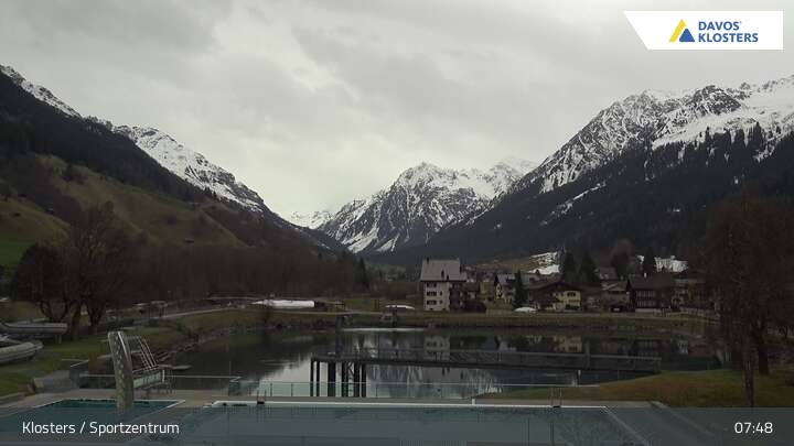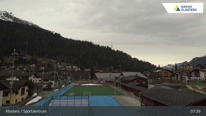 Archived webcam image showing Sport center Klosters on 13 Apr 2026 at 07:48 06:00