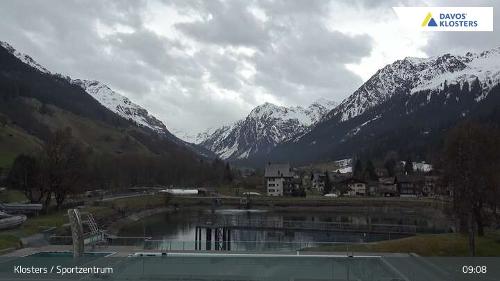 Archived webcam image showing Sport center Klosters on 13 Apr 2026 at 09:48 Aktuell