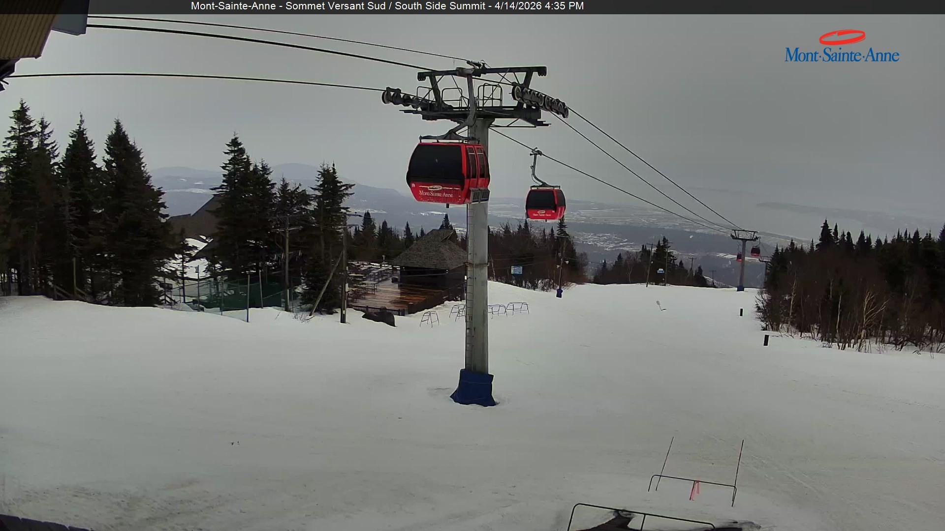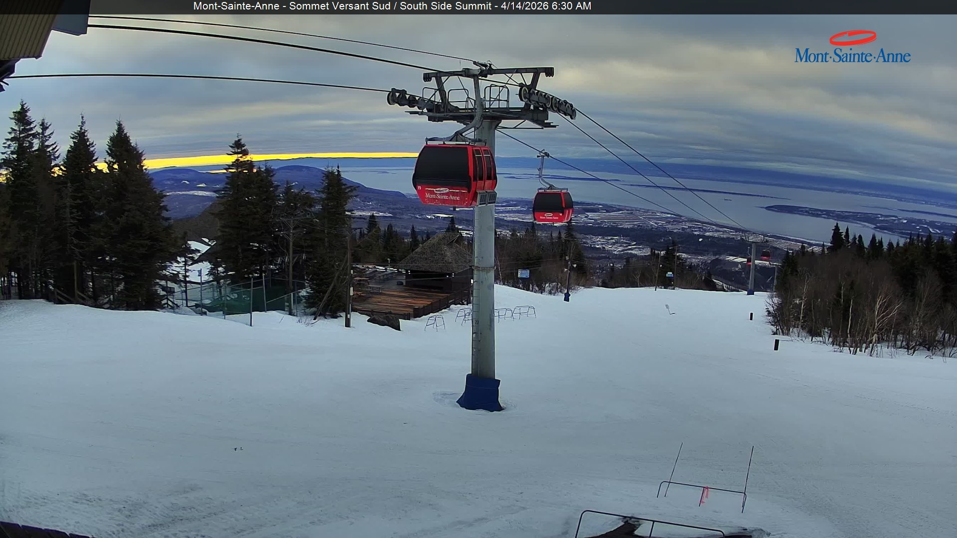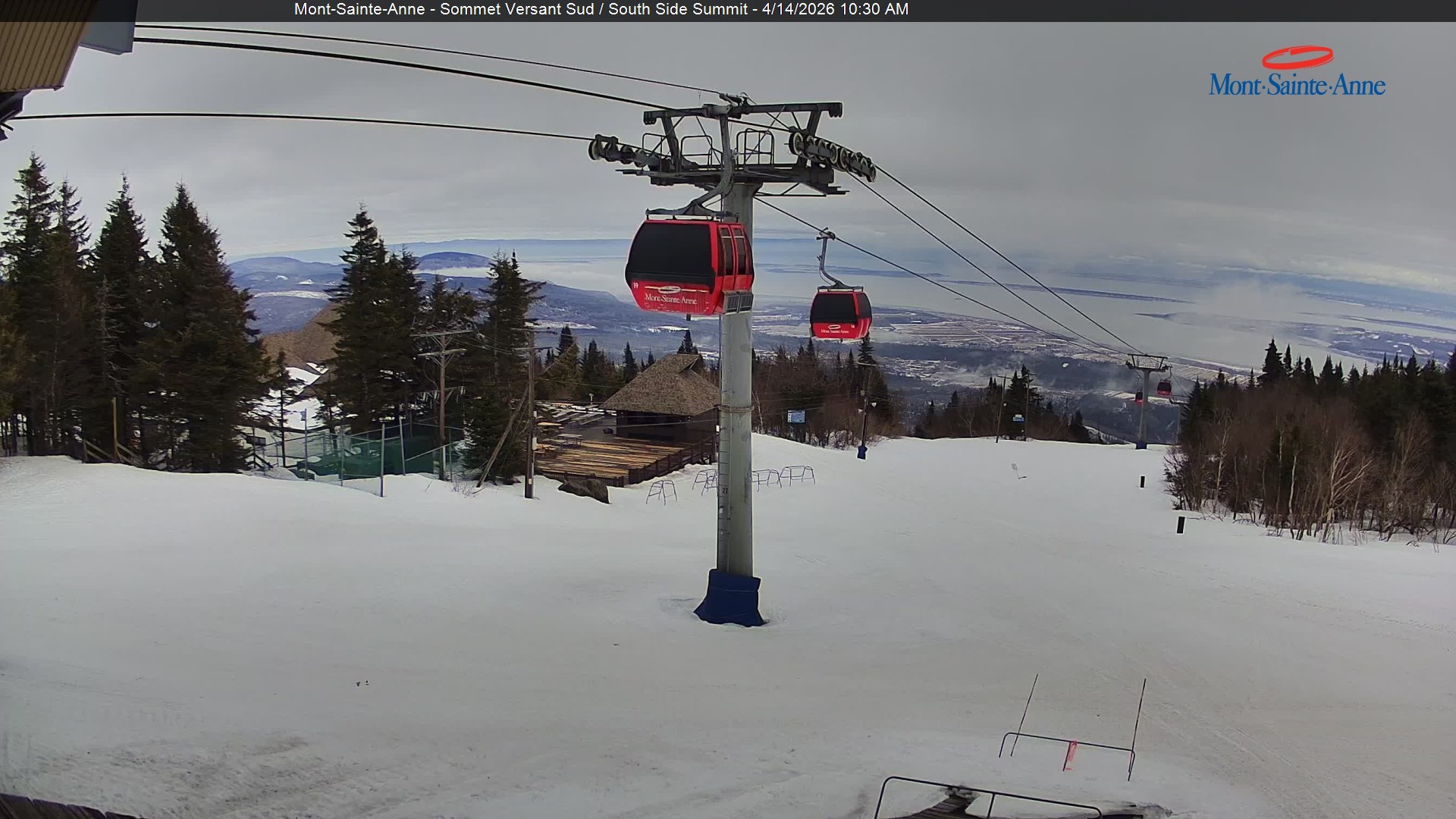 Diese Webcam zeigt den Blick vom Gipfel des Mont Sainte Anne nahe der kanadischen Großstadt Quebec Richtung Süden. Der Gipfel befindet sich ca. 800 Meter ü. NN. Das Skigebiet Mont Sainte Anne zählt mit seinen 31 Abfahrten zu den größeren Skigebieten in Kanada.