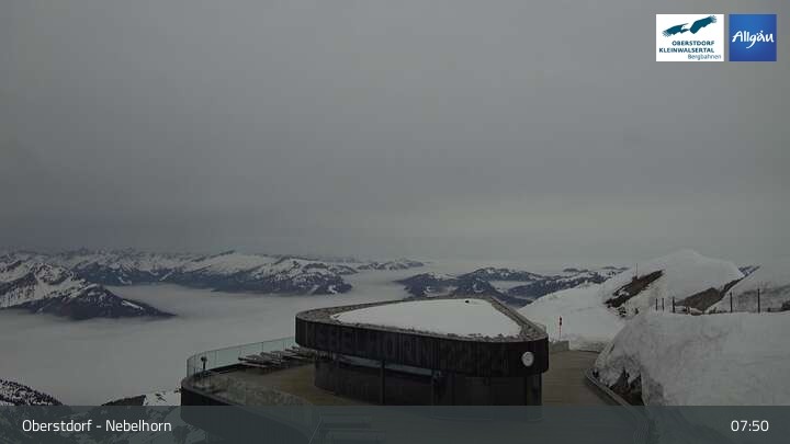 Archiviertes Webcam Bild: Oberstdorf: Nebelhorn Bergstation am 13.04.2026 um 08:58 Uhr 08:00