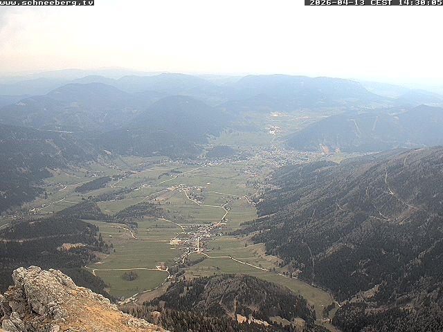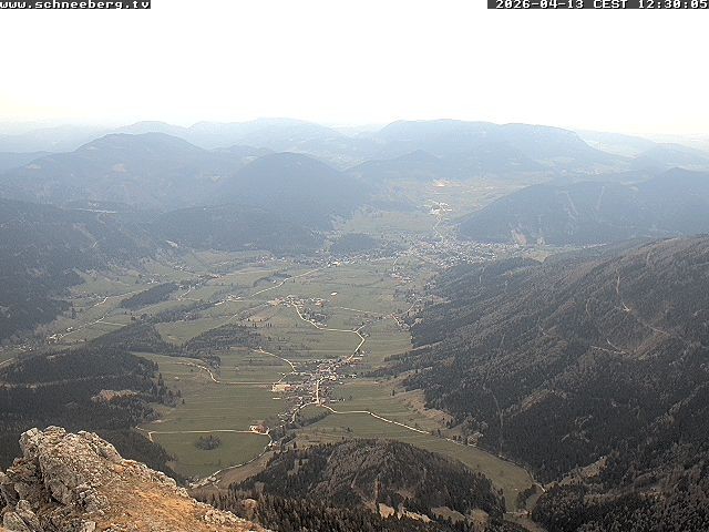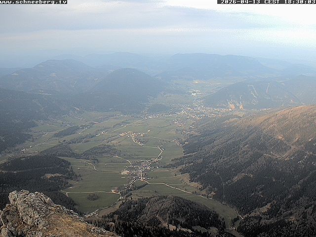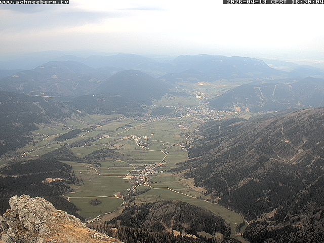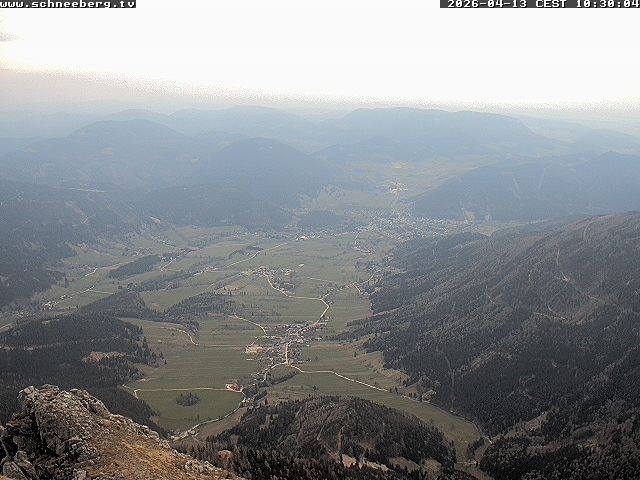 Die Webcam eröffnet den Fernblick vom Berghaus Hochschneeberg ins Tal nach Puchberg am Schneeberg (Niederösterreich).