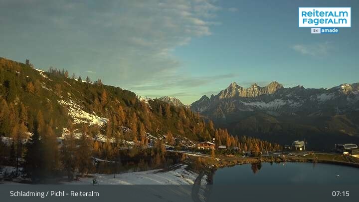 Diese Webcam befindet sich oberhalb des Speichersees im Skigebiet Reiteralm (Steiermark). Zu sehen sind links im Bild die Bergstation der 8er Gondel Preunegg Jet und rechts die Bergstation des 4er Sessellifts Sepp`n Jet. Neben dem Preunegg Jet befindet sich die Gasselhöh Hütte, die mit traditionellen Speisen zum Einkehrschwung lädt.