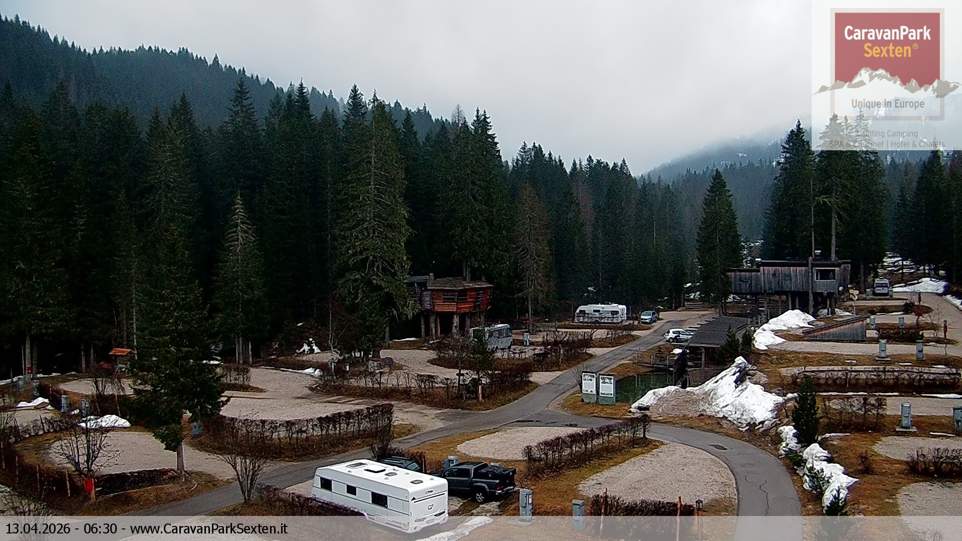 Archiviertes Webcam Bild: Caravanpark Sexten - Moos am 13.04.2026 um 04:39 Uhr 04:00