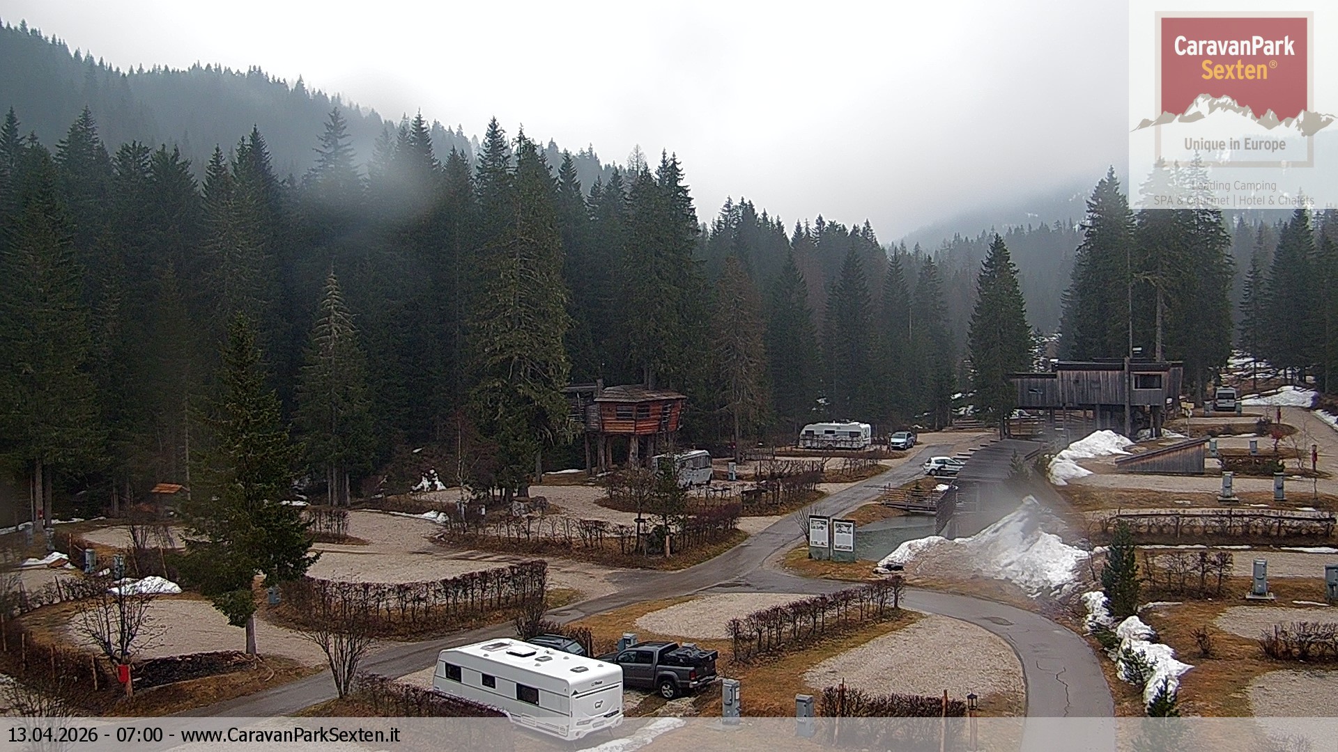 Archiviertes Webcam Bild: Caravanpark Sexten - Moos am 13.04.2026 um 07:39 Uhr 07:00