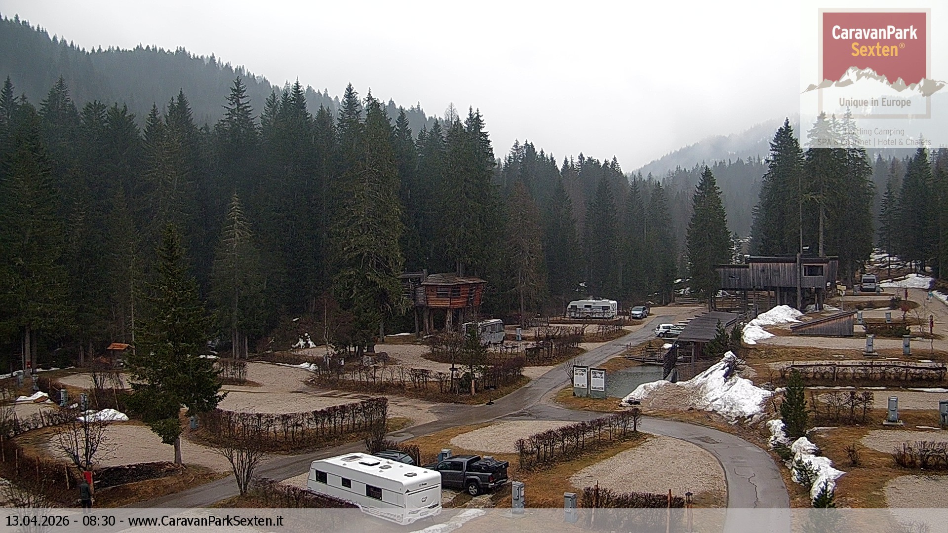 Archiviertes Webcam Bild: Caravanpark Sexten - Moos am 13.04.2026 um 08:39 Uhr 08:00