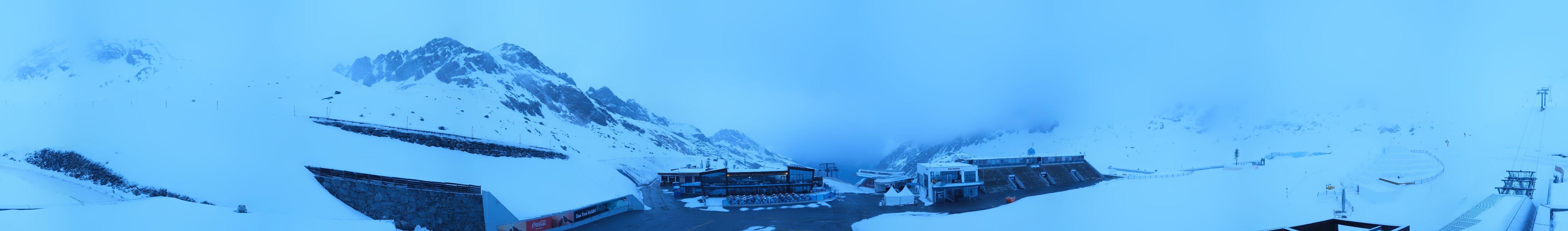 Auf dieser Webcam sieht man die Talstation des Rettenbachgletschers in Sölden mit Blick auf das Gletscherstadion und die Skipisten.