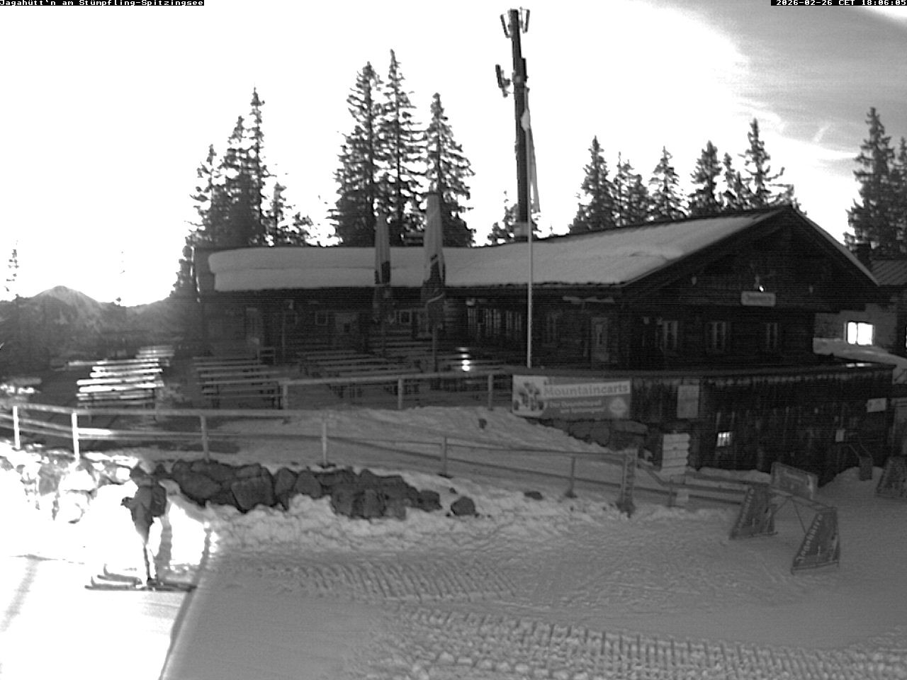 Archiviertes Webcam Bild: Spitzingsee: Jagahüttn am Stümpfling am 26 Feb 2026 um 18:12 Uhr Aktuell