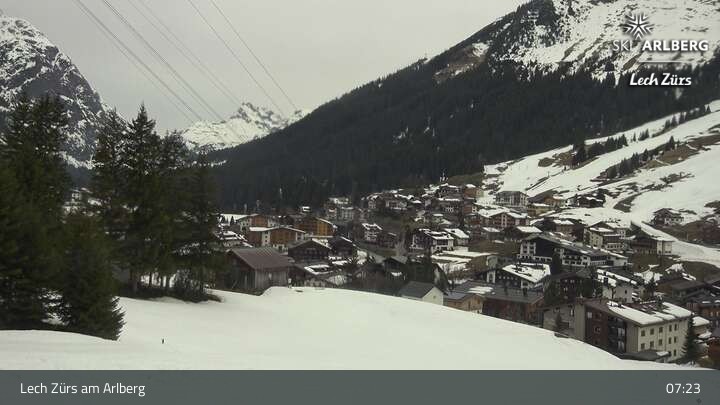 Archiviertes Webcam Bild: Oberlech am Arlberg: Blick vom Flühenlift am 13.04.2026 um 07:22 Uhr 07:00