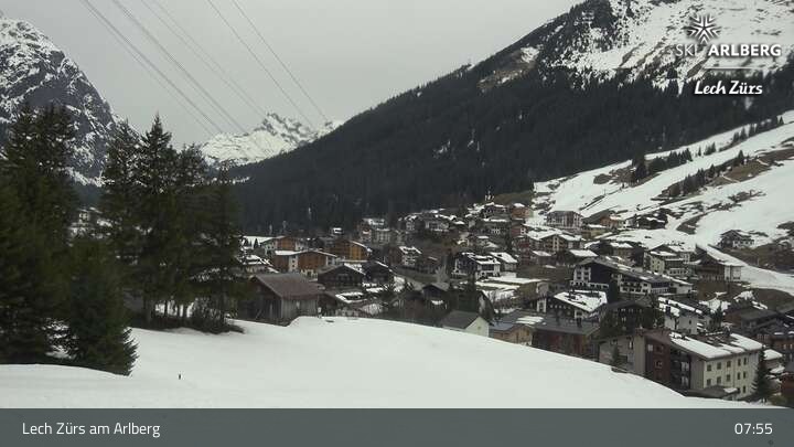 Archiviertes Webcam Bild: Oberlech am Arlberg: Blick vom Flühenlift am 13.04.2026 um 08:22 Uhr 08:00