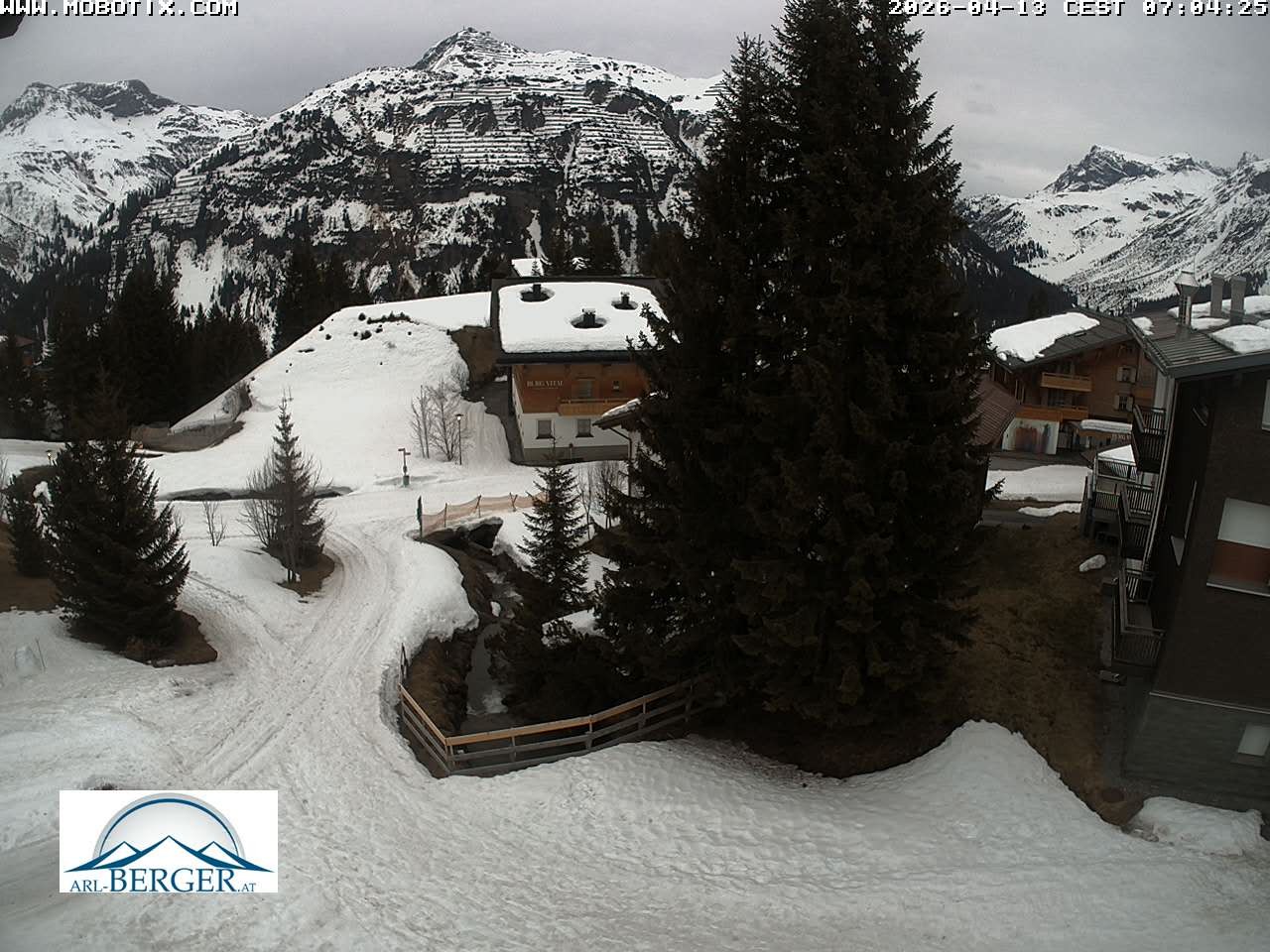 Archiviertes Webcam Bild: Oberlech: Pension Berger am 13.04.2026 um 07:07 Uhr 07:00