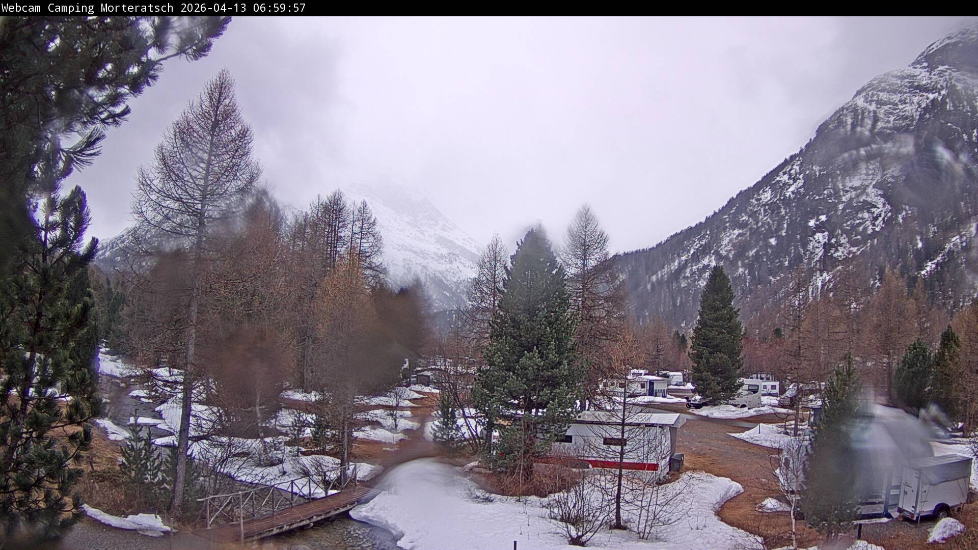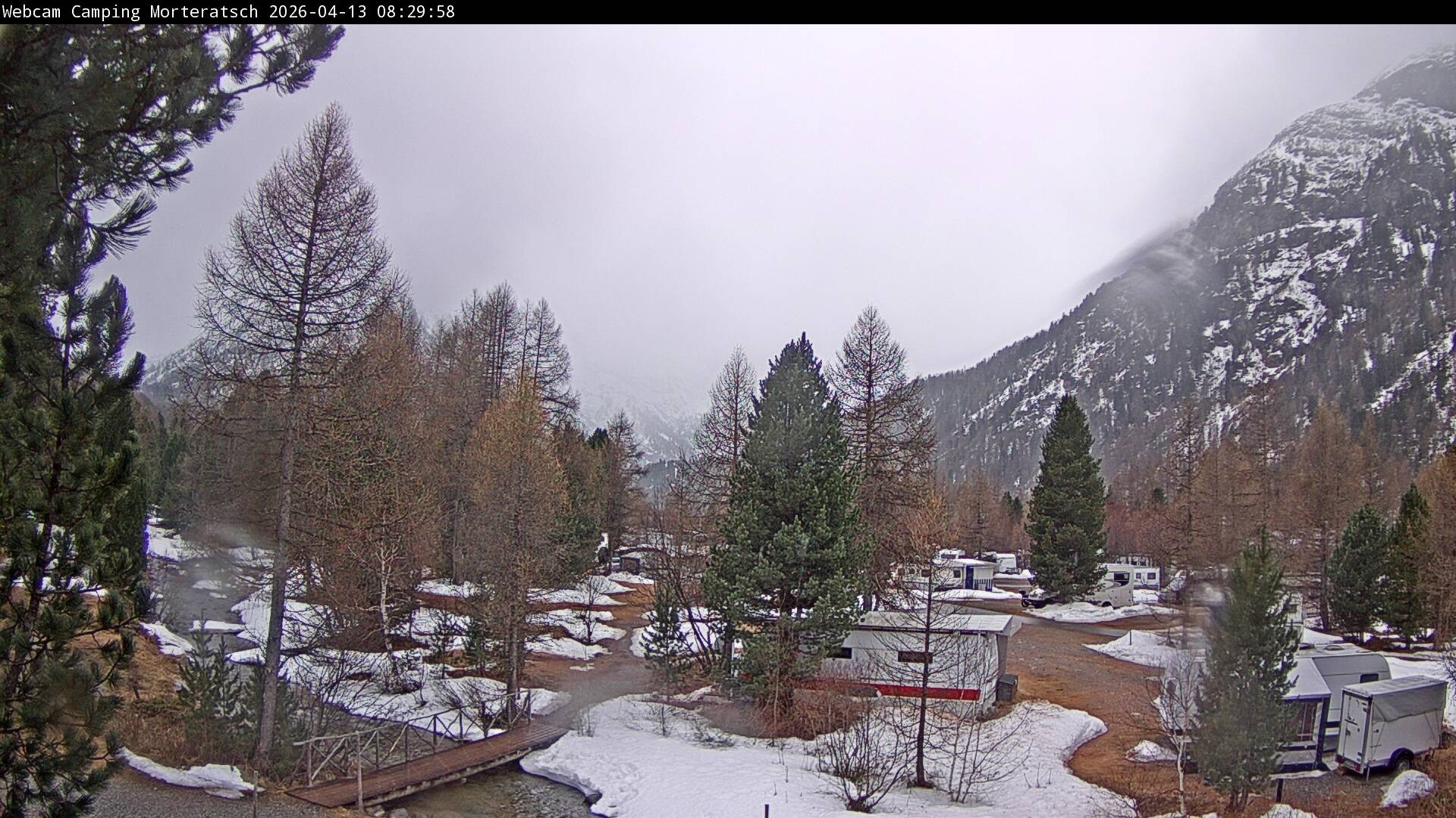 Archiviertes Webcam Bild: Campingplatz Morteratsch, Pontresina am 13.04.2026 um 08:12 Uhr Aktuell