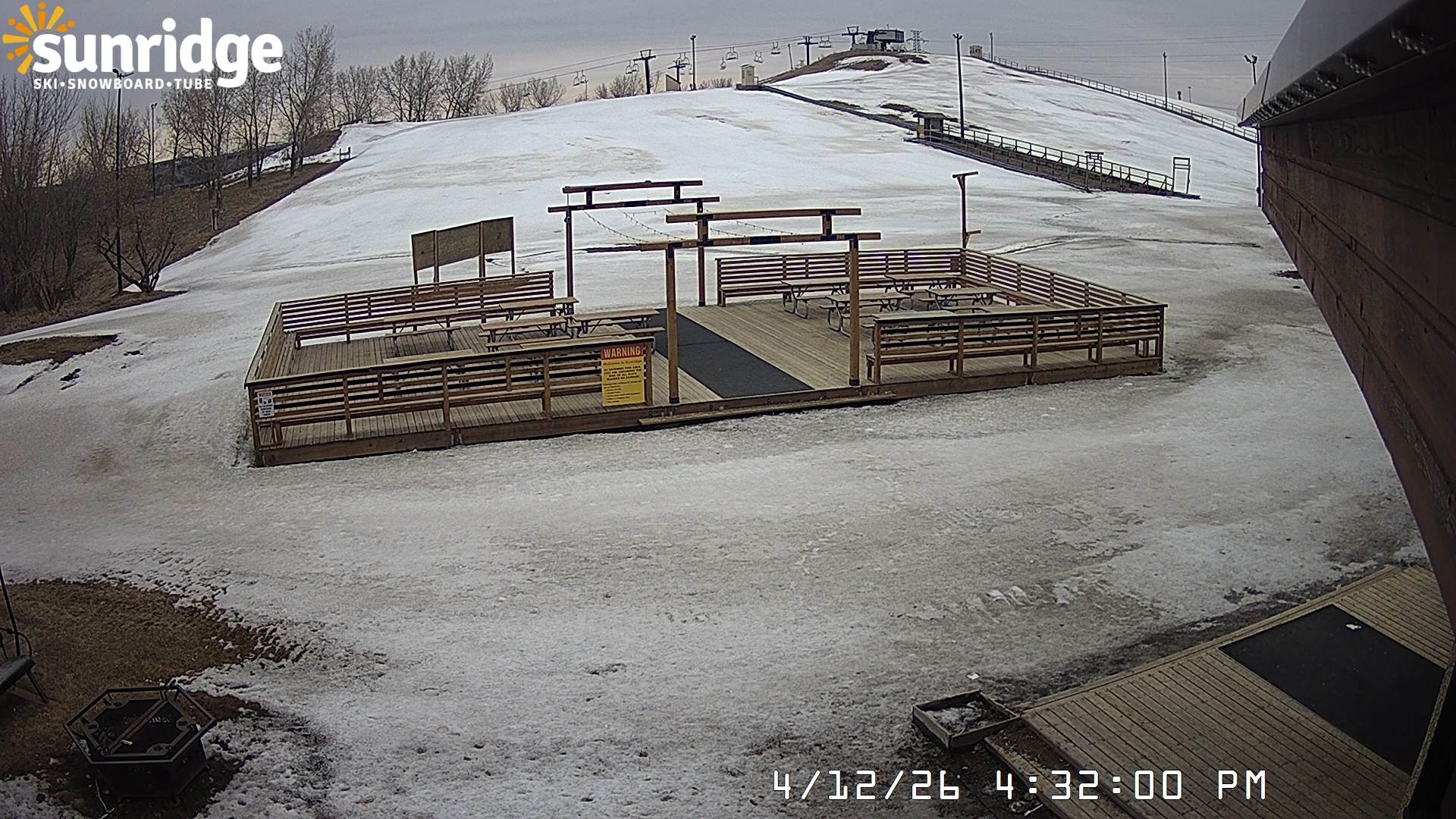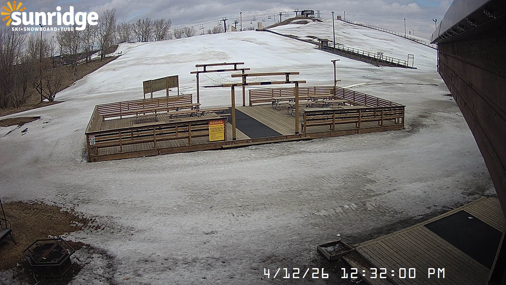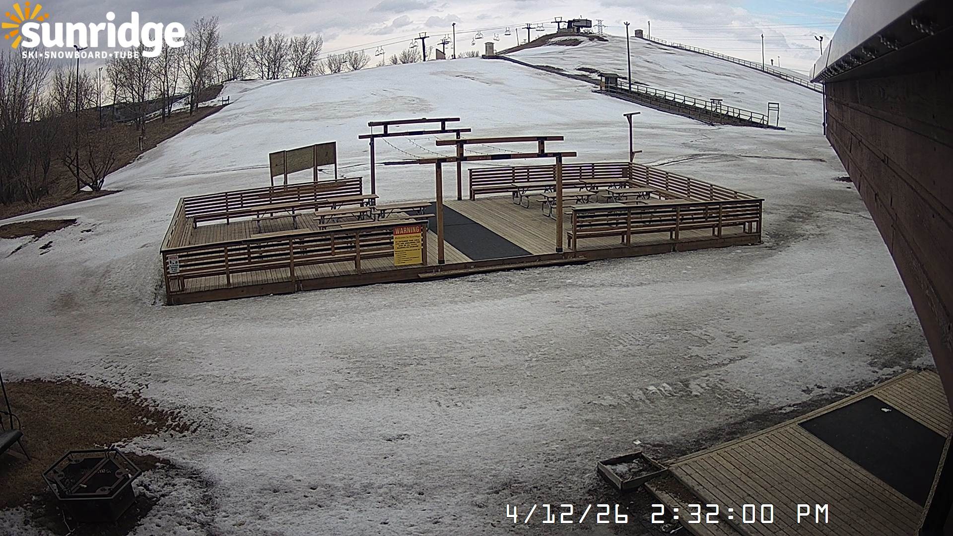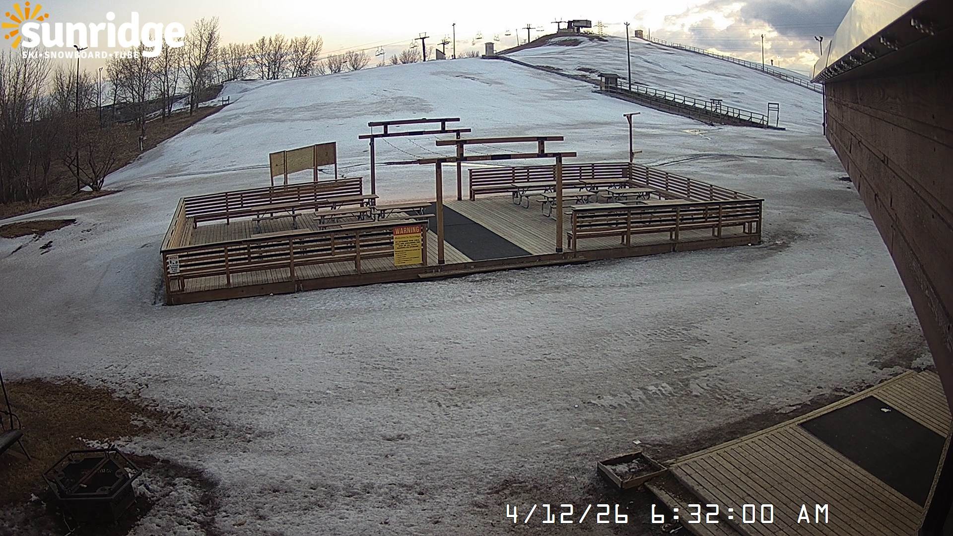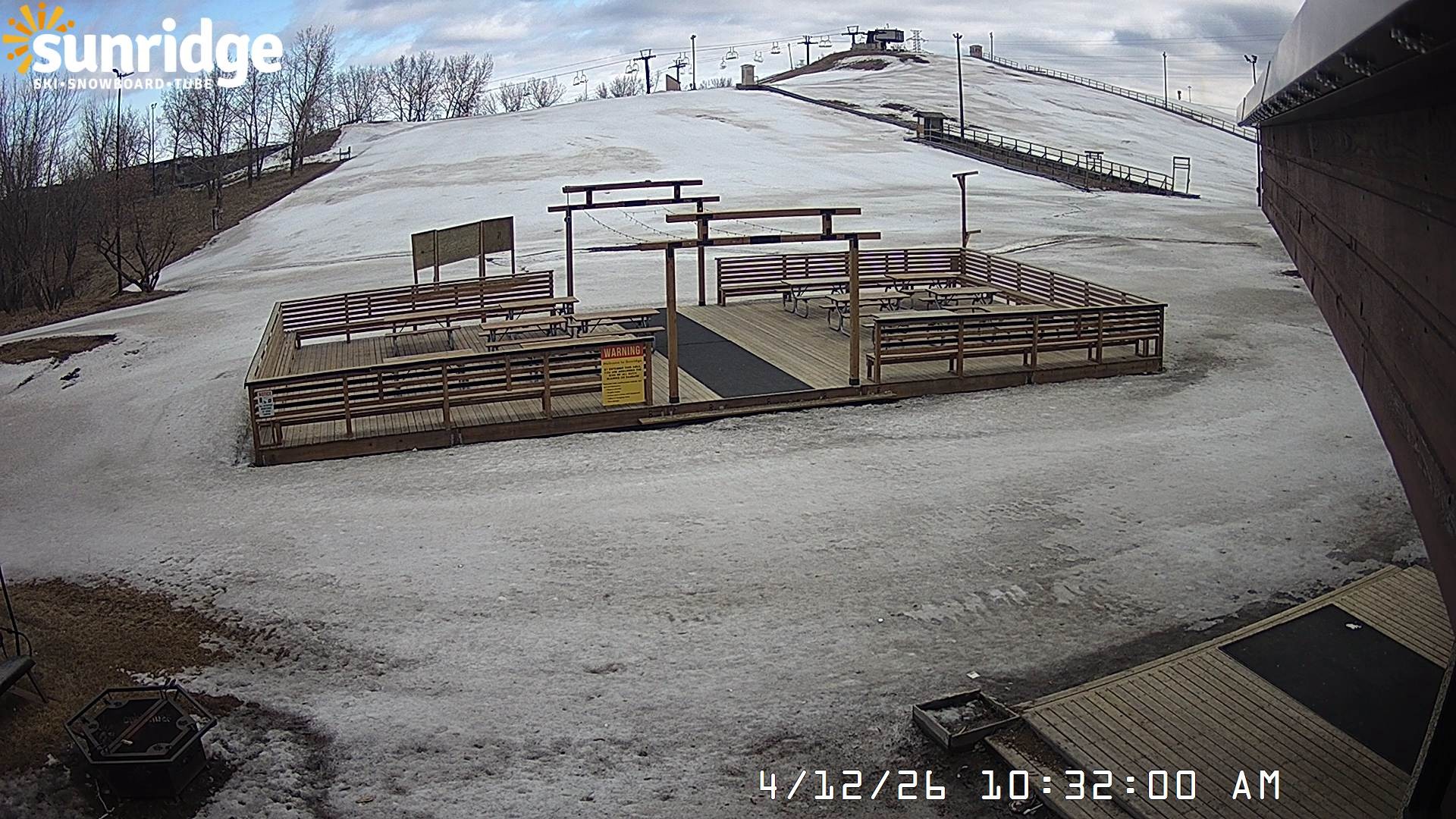 Archiviertes Webcam Bild: Sunridge Bunny Hill - Blick vom Chalet im Tal am 12.04.2026 um 14:35 Uhr 06:00