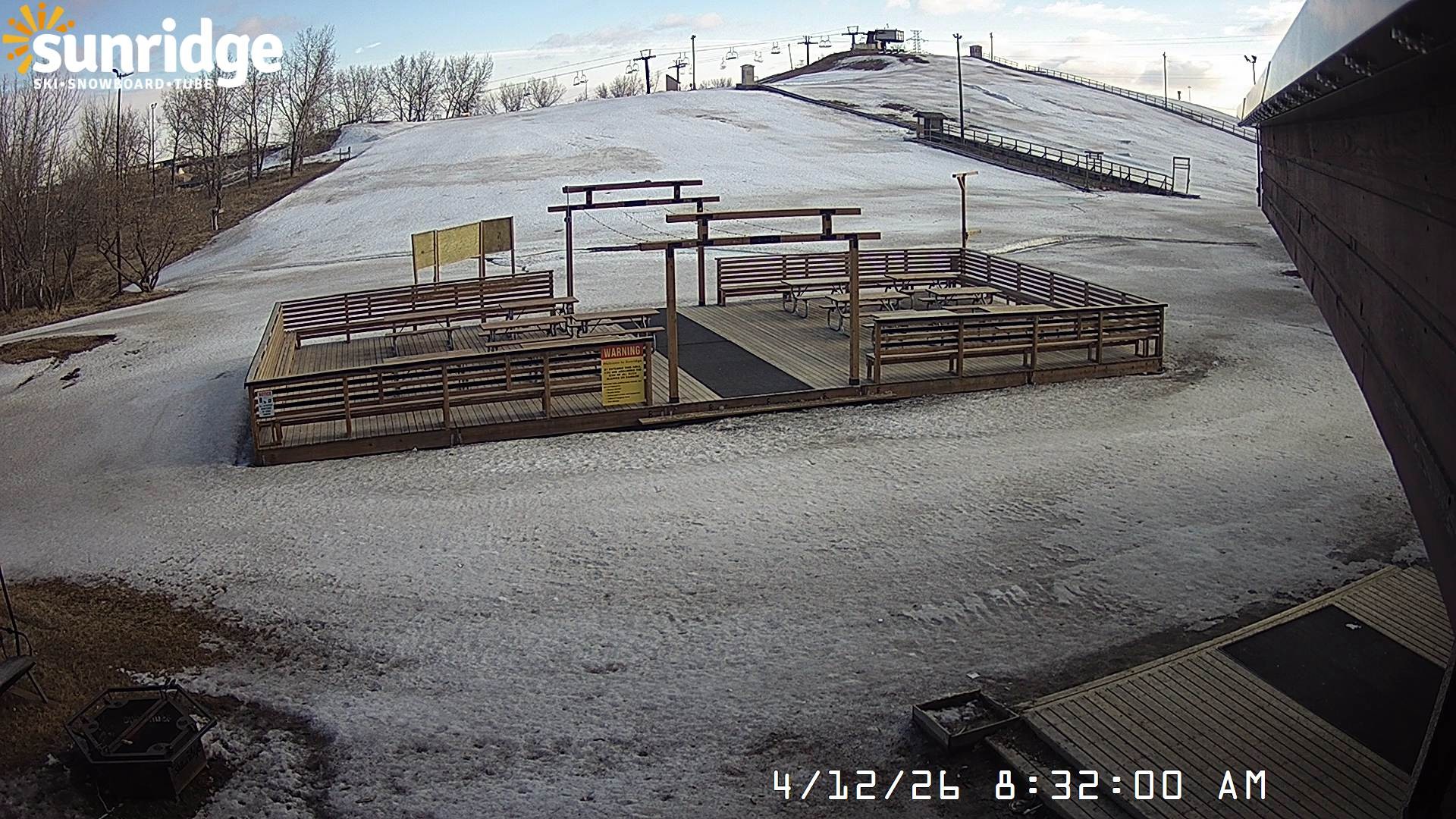 Archiviertes Webcam Bild: Sunridge Bunny Hill - Blick vom Chalet im Tal am 12.04.2026 um 08:35 Uhr 00:00