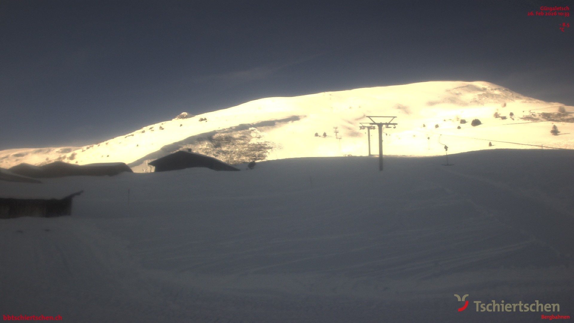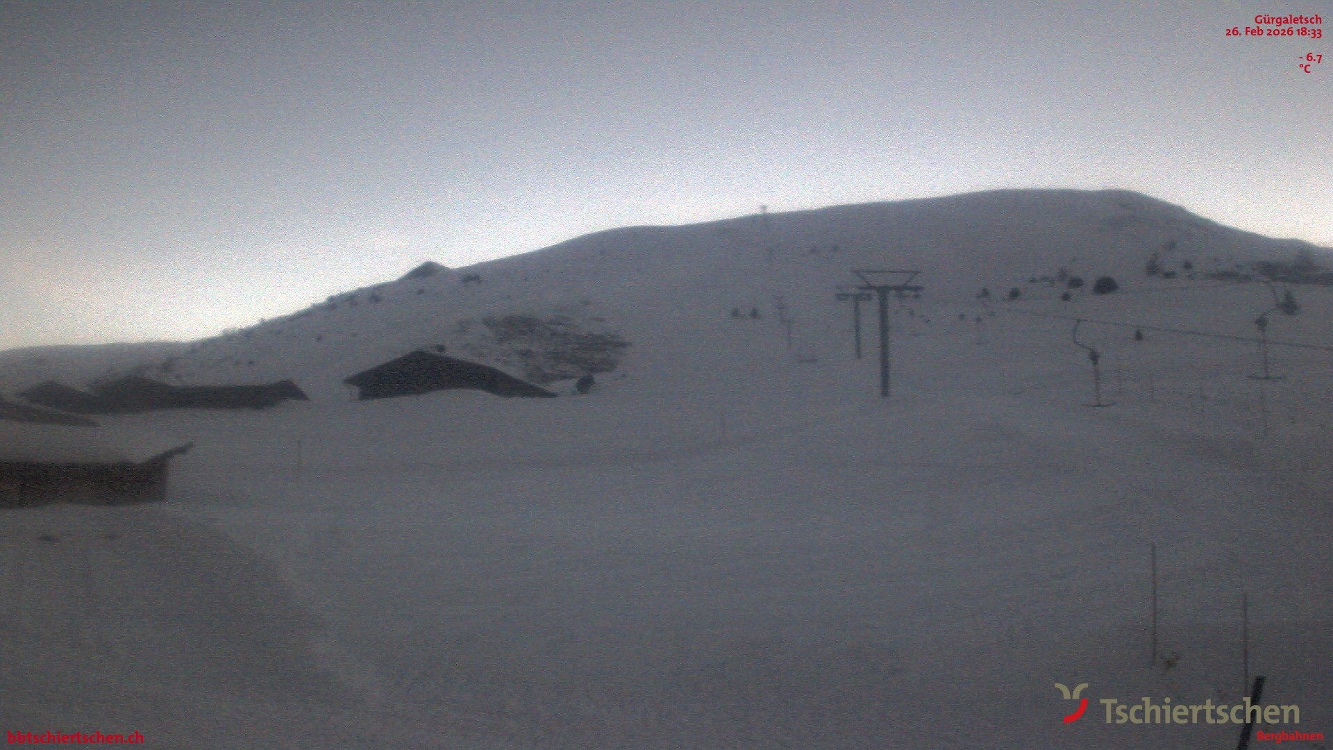 Archiviertes Webcam Bild: Blick auf den Schlepplift der Tschiertschen Bergbahnen am 26 Feb 2026 um 18:49 Uhr Aktuell