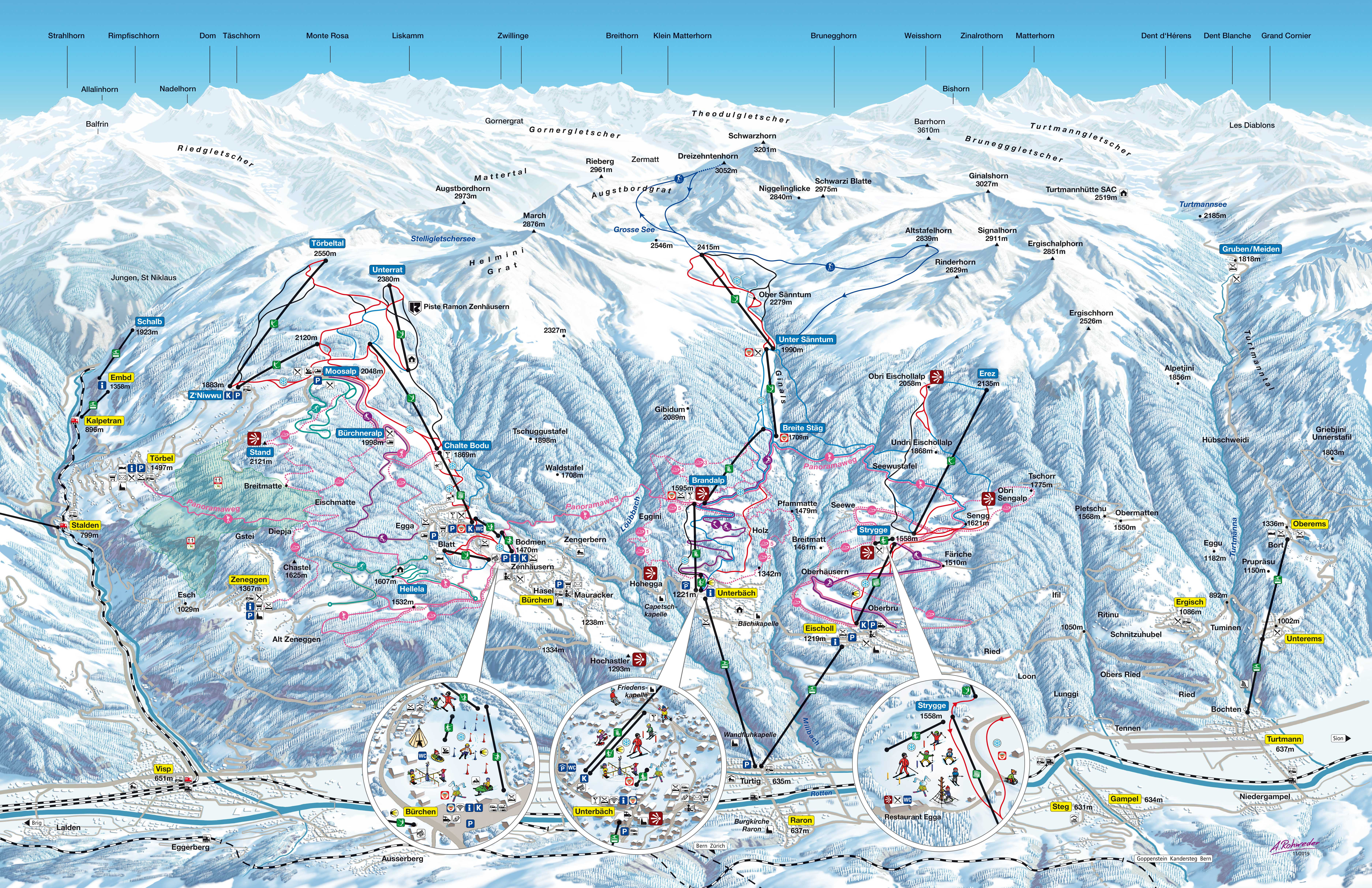 Pistenplan Unterbäch - Ginals - Skipanorama