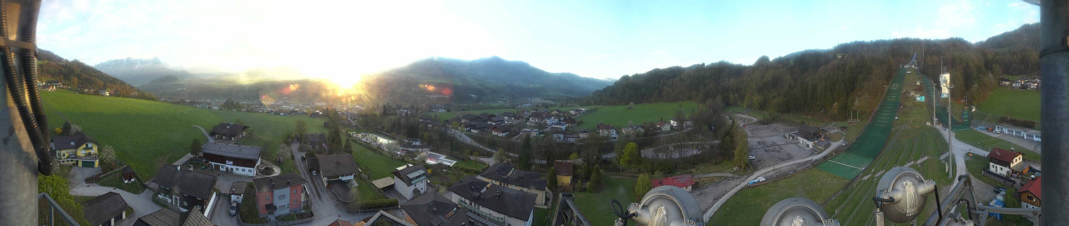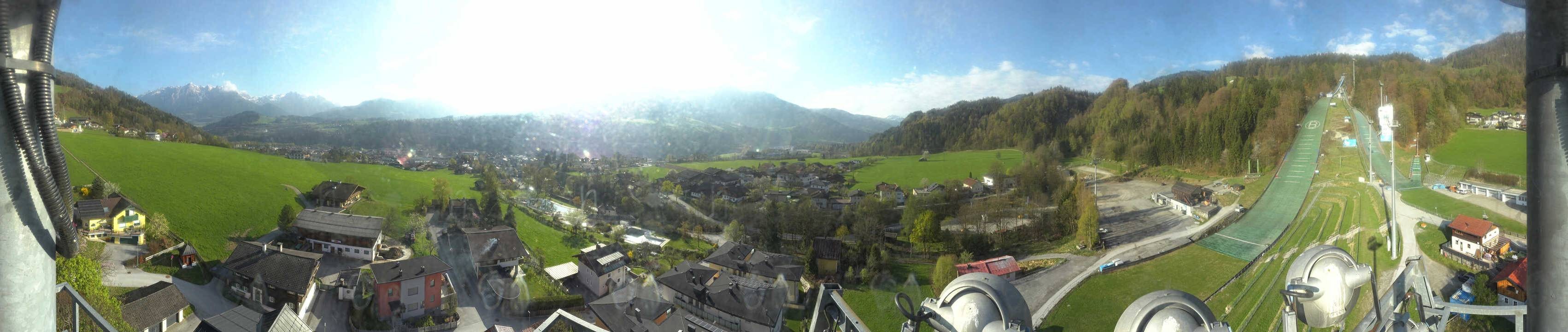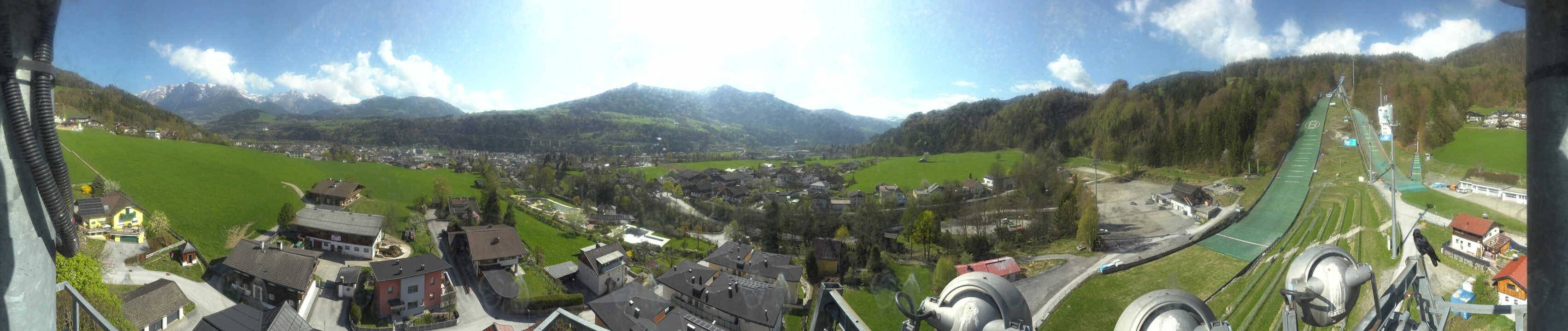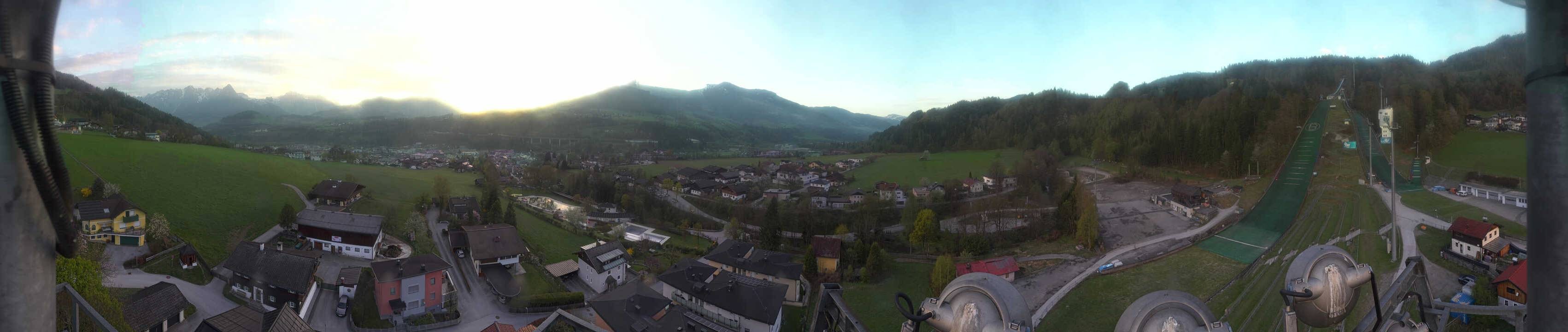 Toller Blick auf Bischofshofen im Salzburger Land, wo sich auch die Paul-Außerleitner-Schanze befindet. Dort sind jedes Jahr im Januar die weltbesten Skispringen im Rahmen der Vierschanzentournee zu Gast. Während der Wettkämpfe kann es zu Einschränkungen im Webcambetrieb kommen.