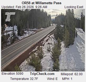 Archiviertes Webcam Bild: Willamette Pass: Blick auf die Strasse am 26 Feb 2026 um 08:31 Uhr 23:00