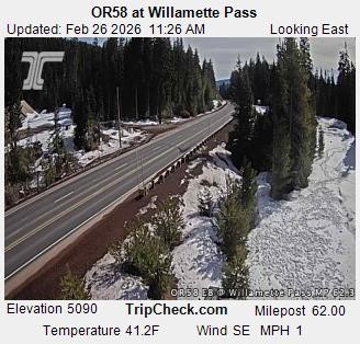 Archiviertes Webcam Bild: Willamette Pass: Blick auf die Strasse am 26 Feb 2026 um 14:31 Uhr 05:00