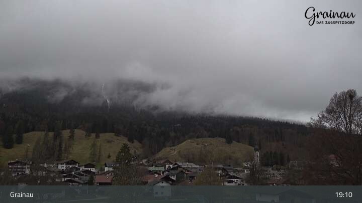 Archived webcam image showing Panoramic view of Grainau on 12 Apr 2026 at 19:56 18:00