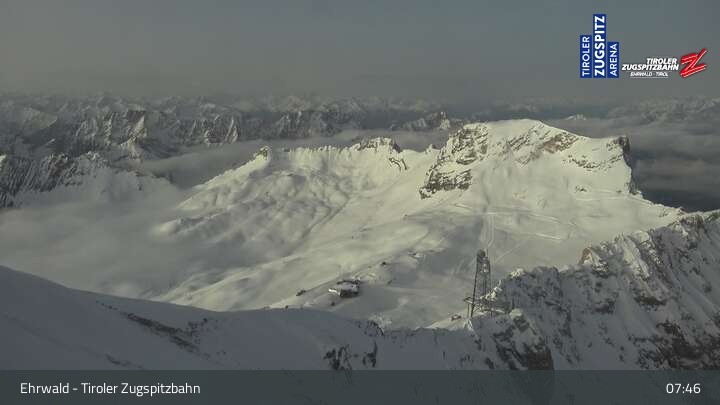 Archiviertes Webcam Bild: Tiroler Zugspitzbahn Bergstation am 12.04.2026 um 07:45 Uhr 07:00