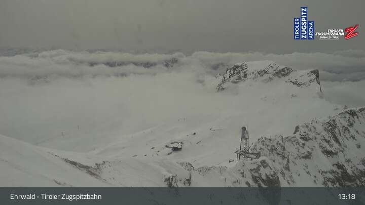 Archiviertes Webcam Bild: Tiroler Zugspitzbahn Bergstation am 12.04.2026 um 13:45 Uhr 13:00