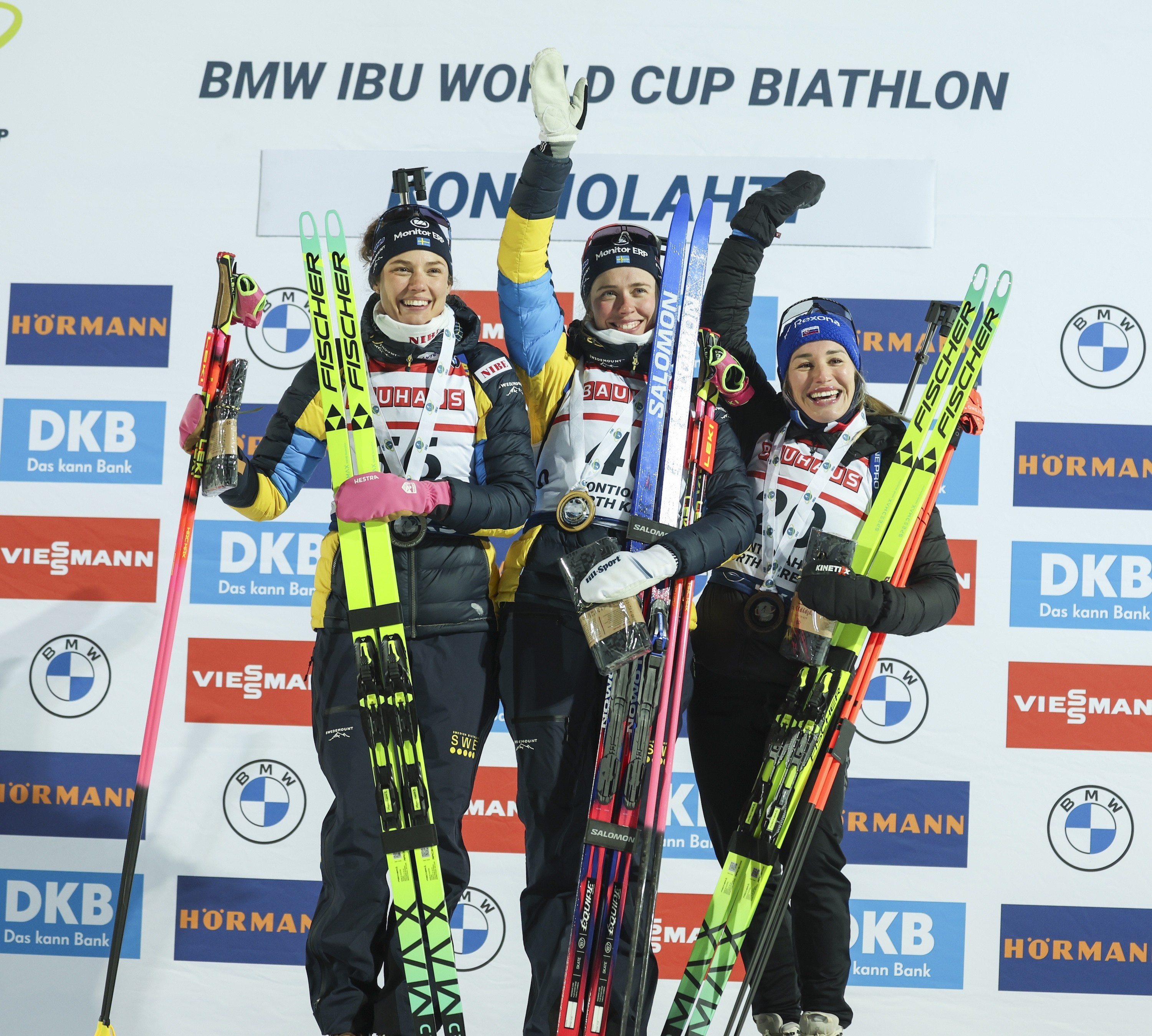 Mit Elvira und Hanna Öberg gewinnen zwei schwedische Schwestern vor Paulina Batovska aus der Slowakei. © IBU|Manzoni