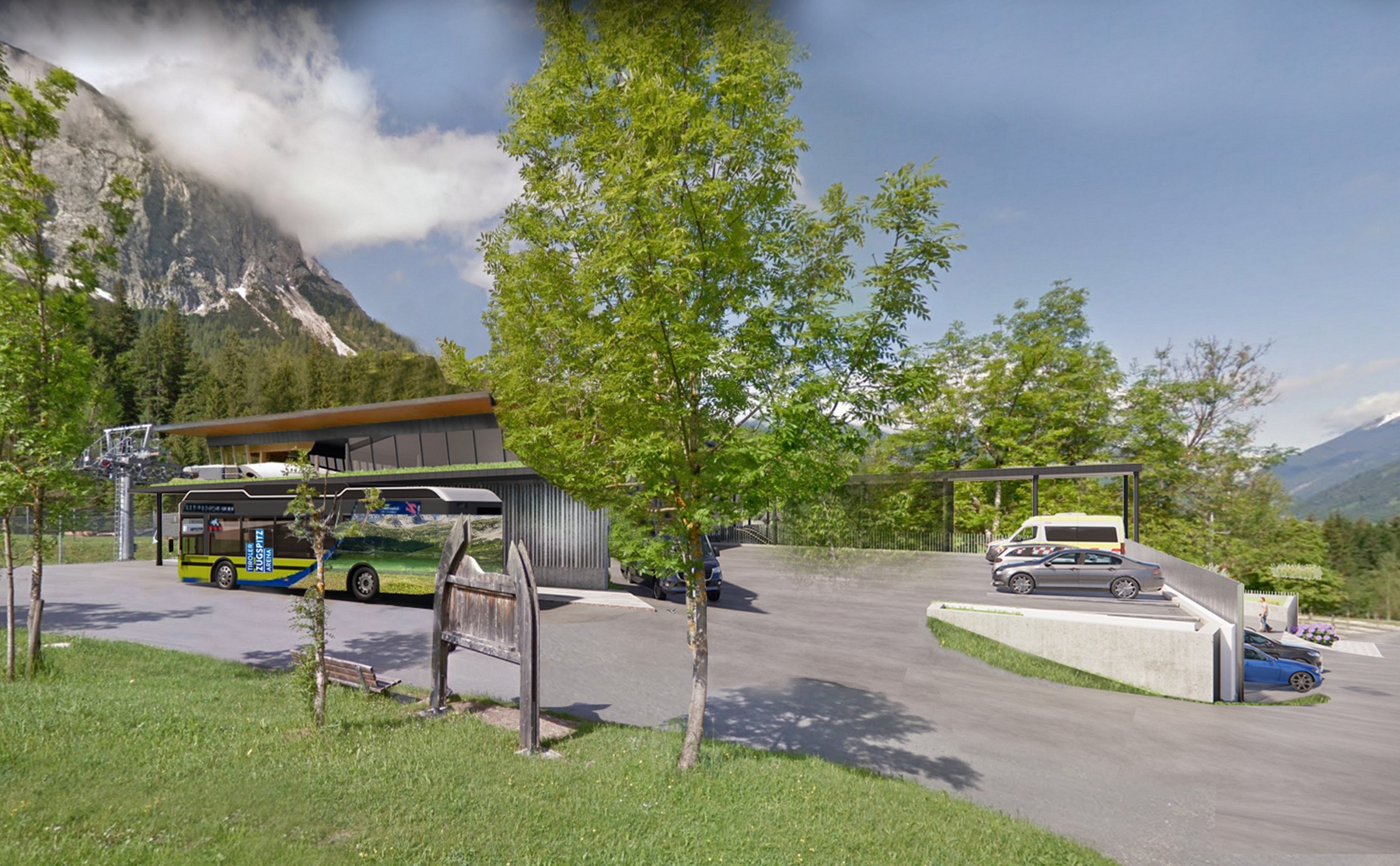 An der Talstation der Ehrwalder Almbahn sind seit dem Frühjahr gleich mehrere große Modernisierungen in Gange: Neben neuen Rolltreppen zur Seilbahn, einer überdachten Bushaltestelle, einem Kiss & Ride-Bereich und einer neuen Tiefgarage sollen außerdem ein Shop, ein Skidepot, ein neuer Kassenbereich und ein Aufzug errichtet werden.