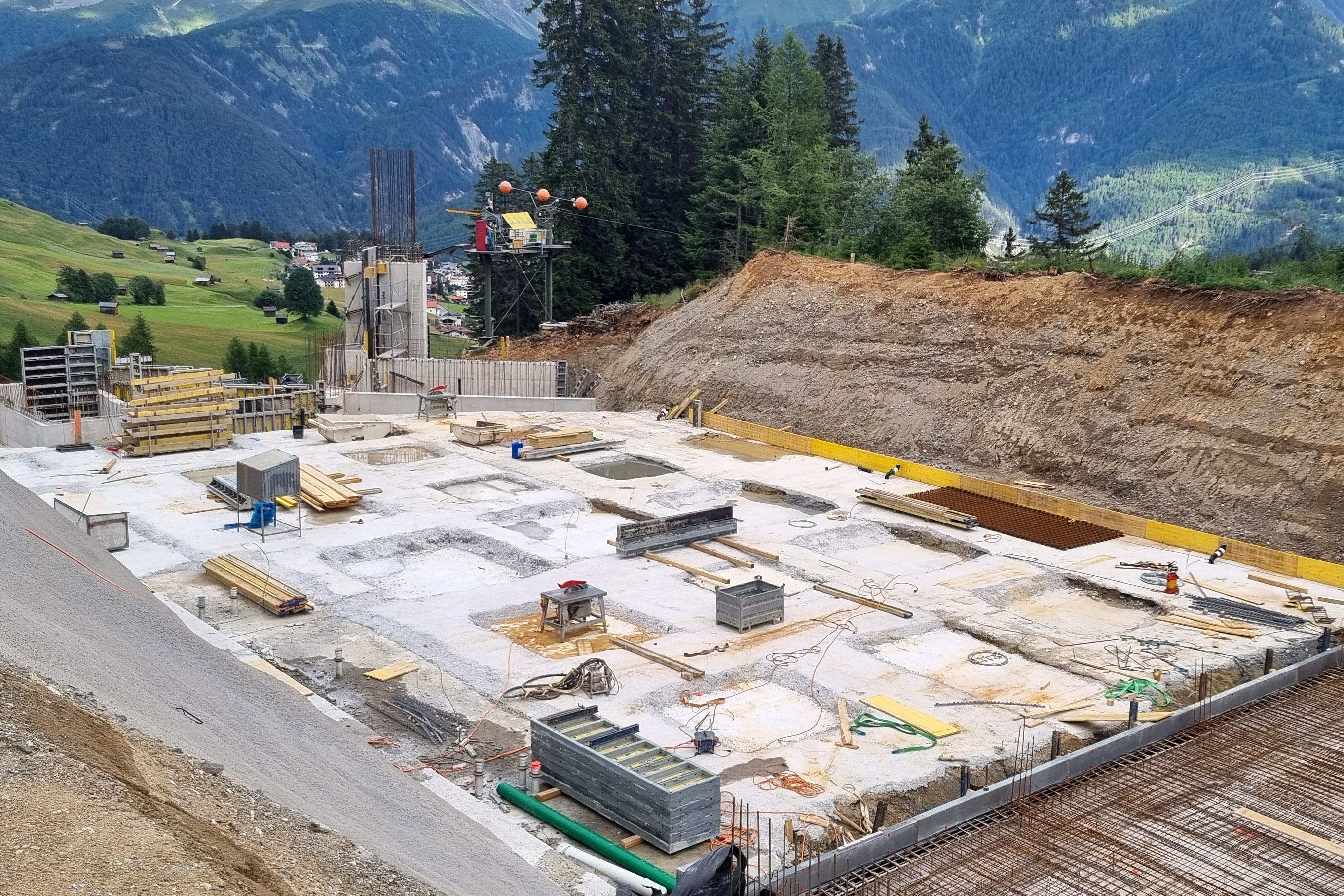 In der ersten Bauphase im Sommer 2022 entsteht die neue Zwischenstation. © Seilbahn Komperdell GmbH