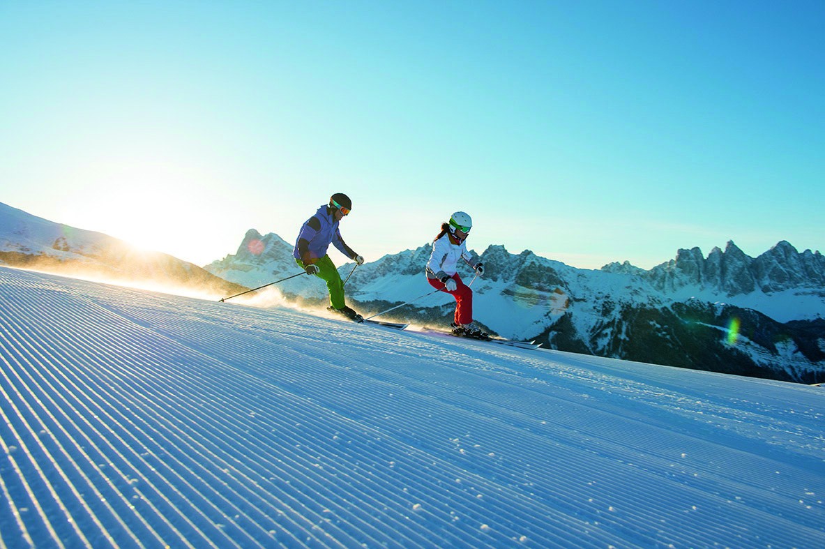 Die frisch präparierte Abfahrt funkelt verführerisch in der Morgensonne. Du holst tief Luft und ziehst den ersten Schwung in die unberührte Piste. In einigen Skigebieten der Sextner Dolomiten kannst du das einmalige Gefühl des Early Bird Skiings im Winter jeden Tag erleben, beispielsweise in Alta Badia und Val Gardena Gröden sowie auf der Seiser Alm und für Skitourengeher im Skigebiet am Helm.
