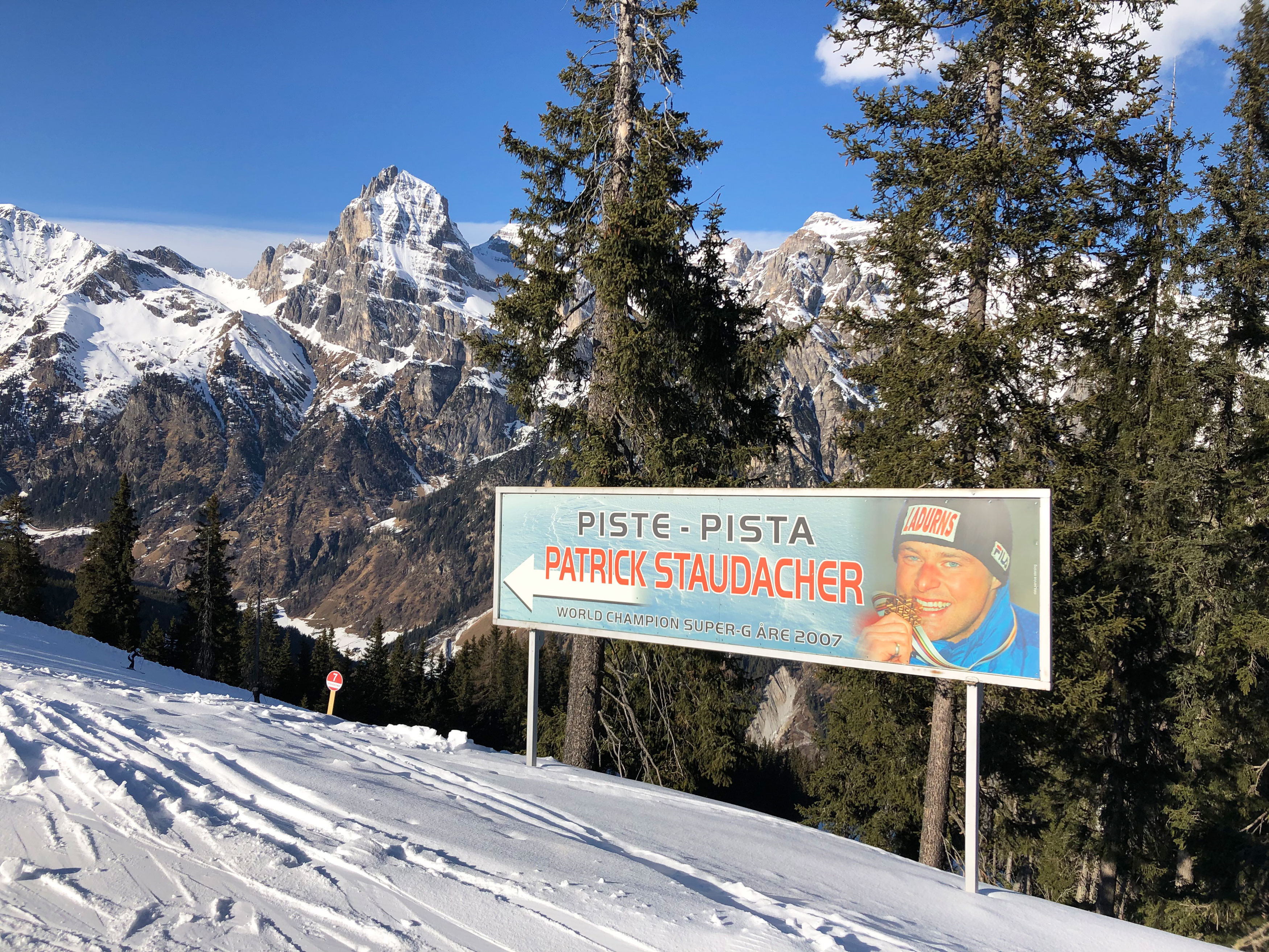 Die Region um Ladurns ist nach wie vor sehr stolz auf "ihren" Weltmeister und hat daher die rote Piste Nr. 7 nach ihm benannt.