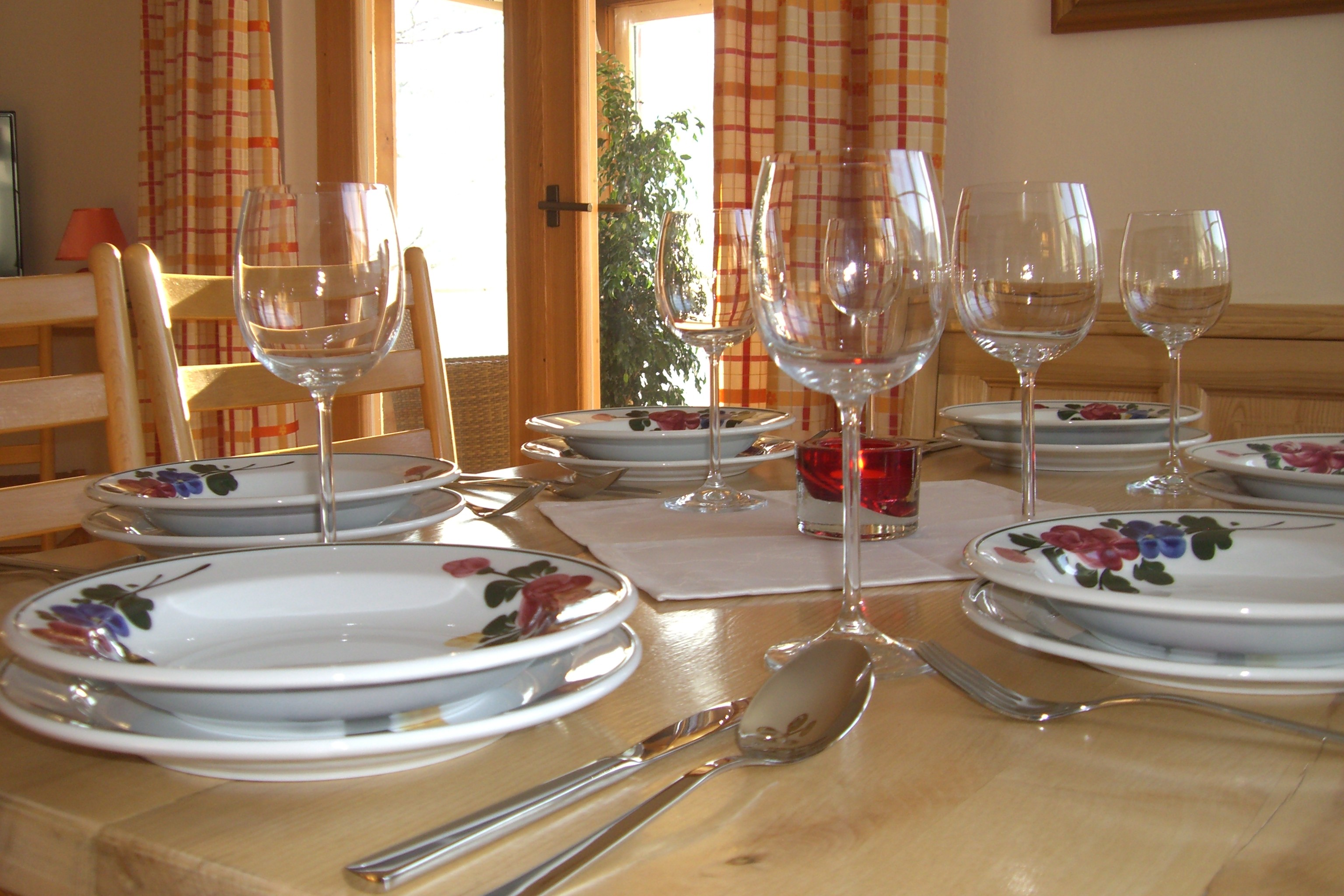 Große Wohnküche mit gemütlicher Eckbank u. Geschirrspüler, Microwelle, Toaster, Eierkocher, Wasserkocher, Kaffeemaschine,eingerichtet für 6 Personen.